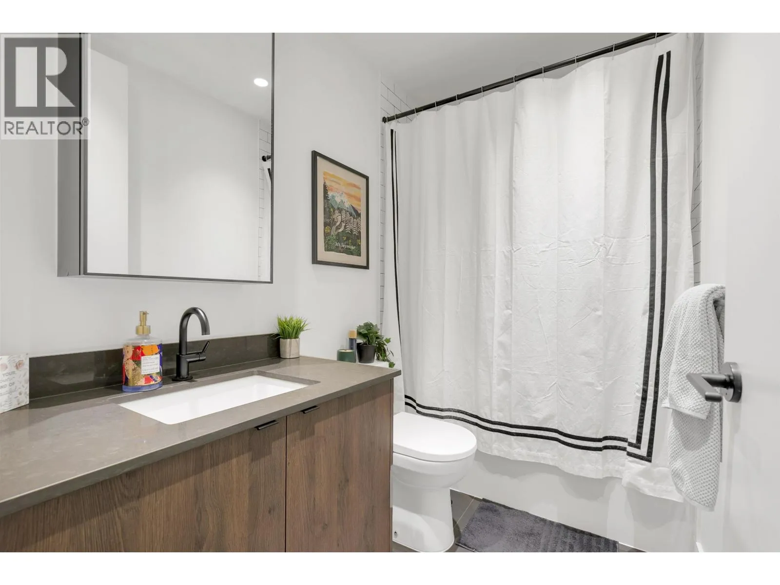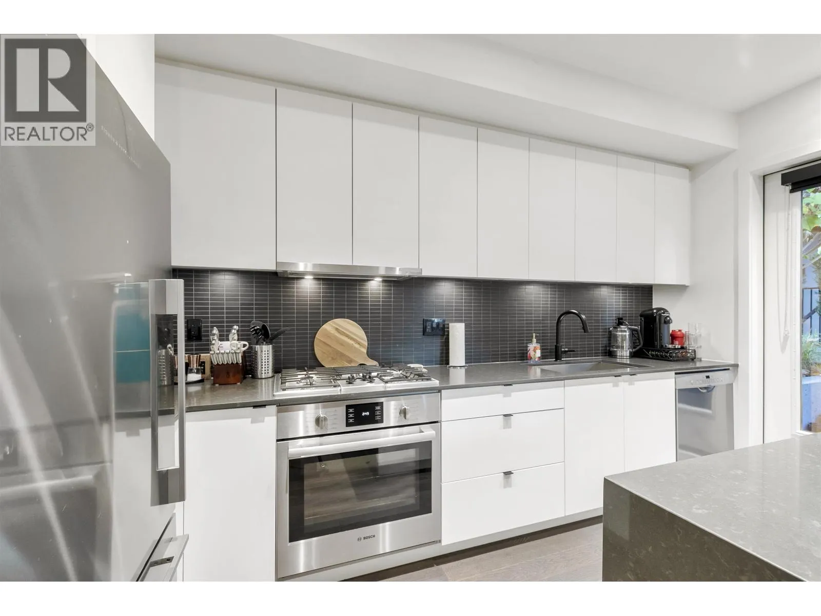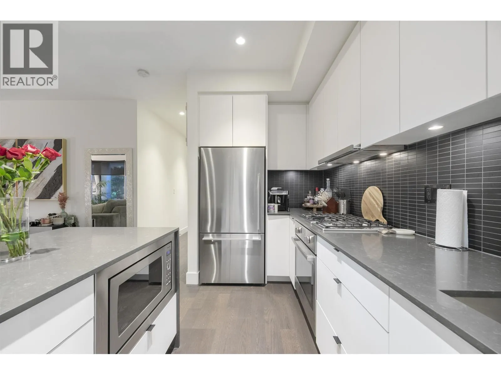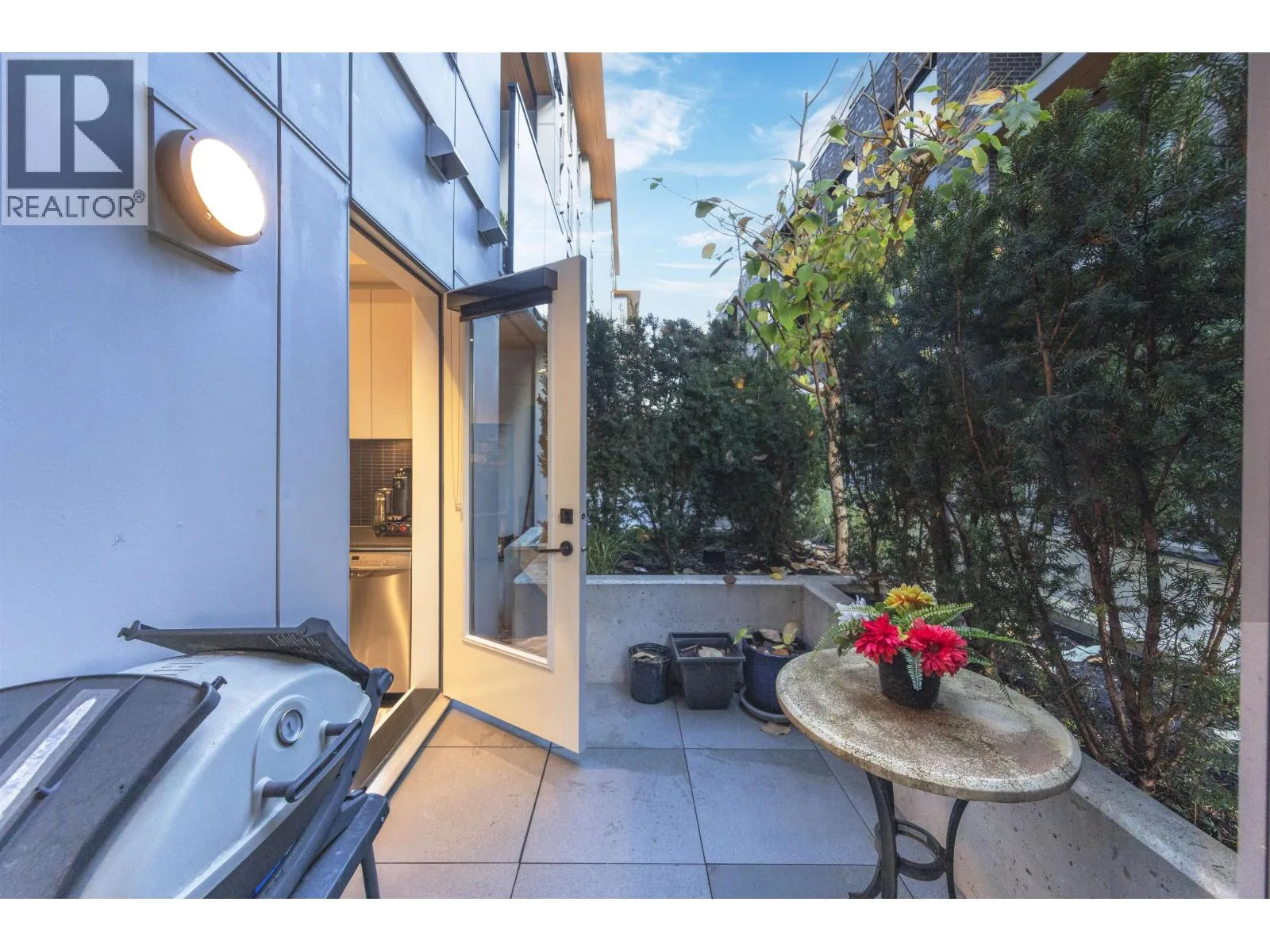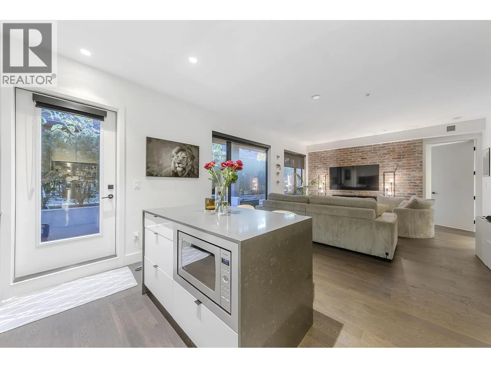Prime Platform Building Central Port Moody; steps away from Rocky Point Pier, transit, shops, restaurants, breweries. Enjoy a waterfront lifestyle in this spacious end unit that offers 810 square ft of open concept luxury living together with 206 square ft private covered outdoor terrace. Home conveniently located on second floor inside a secure Courtyard with easy come and go access. One King Size bedroom with walk in closet plus 2 full bathrooms. Brick feature wall with fireplace in living area; hardwood floors; stainless appliances; kitchen island ; breakfast bar.; great area for entertaining both inside and outside on the Terrace with gas BBQ outlet / hose bib. Laundry room has extra storage space. Exercise center Bike room; one parking plus large storage locker included. Open House Sun Nov 30 1pm - 2pm (id:27476)