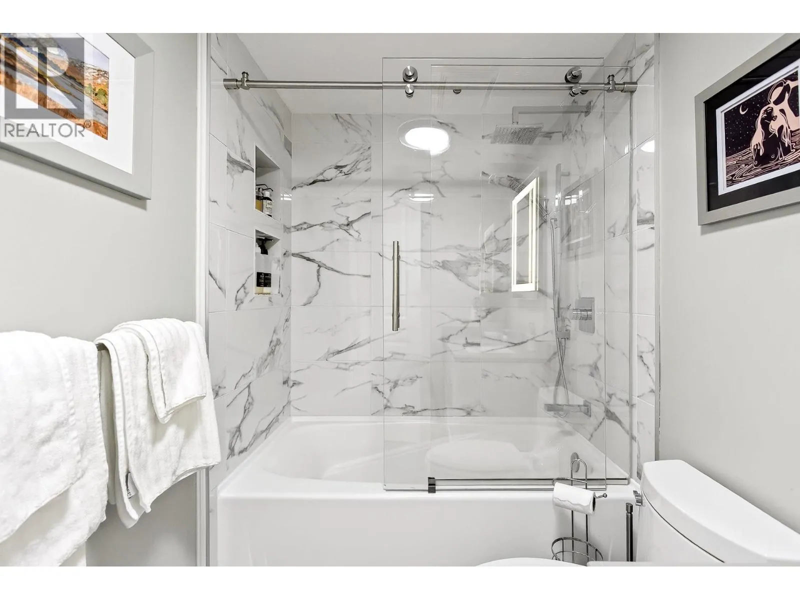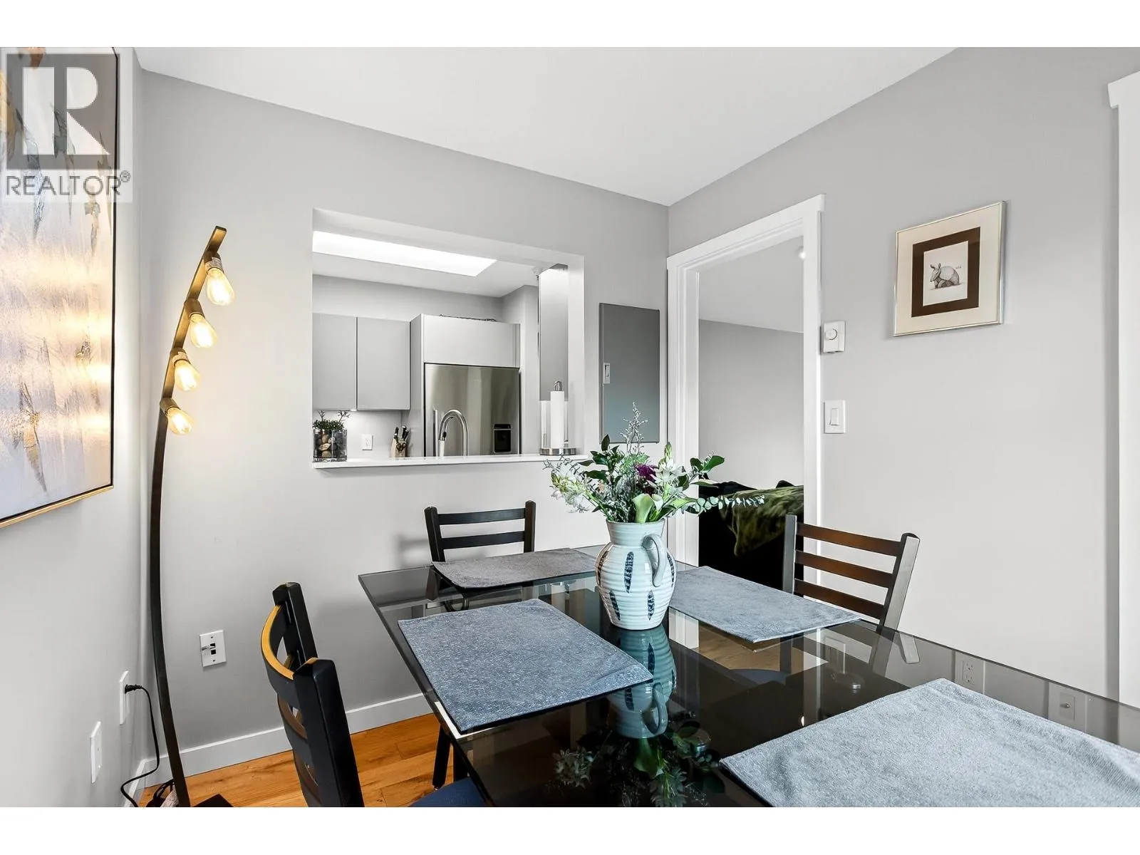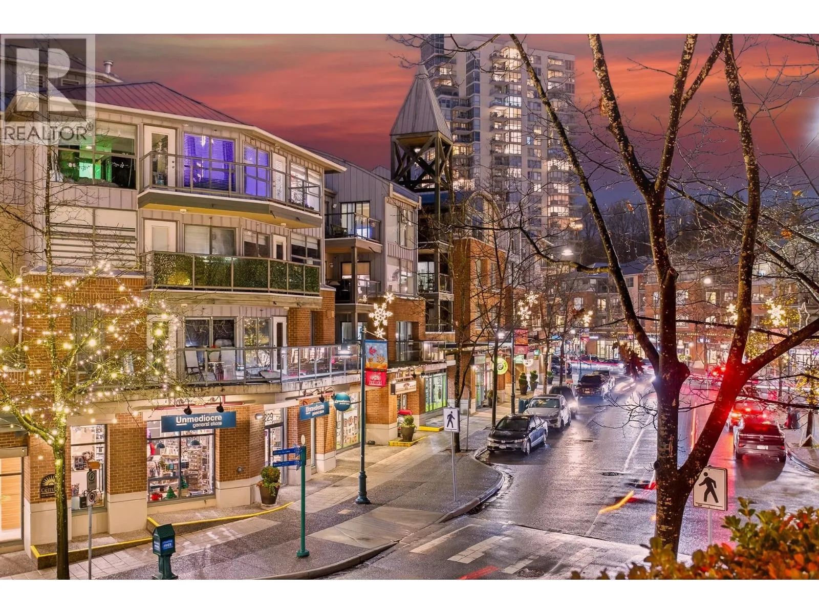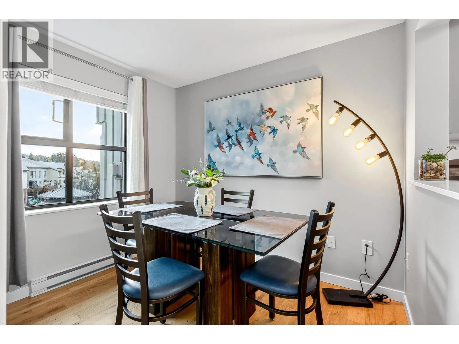Penthouse-style living in the heart of Newport Village! This spacious 1-bed + den/or dining room offers a bright, open feel with tasteful updates throughout, including engineered H/W flooring. The renovated kitchen features new cabinets and s/s appliances (2020). A proper foyer and fully renovated 2-pc powder room enhance the great layout. The living room includes a cozy gas fireplace with new tile surround and sliders to a deck where you can enjoy the lively Village atmosphere. The large primary suite offers a WIC with built-ins, new carpet, and a remodelled ensuite featuring a soaker tub with marble surround, updated vanity, and new flooring. Fresh paint throughout. 1 parking (add´l rentals available) + storage. Steps to shops, dining, Inlet trails, and SkyTrain! (id:27476)