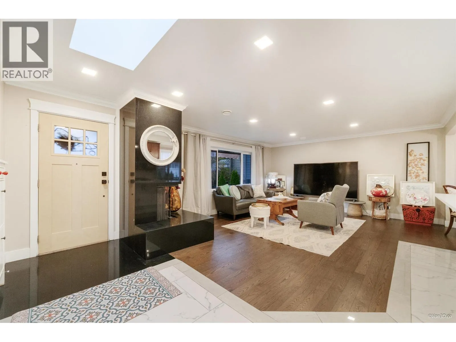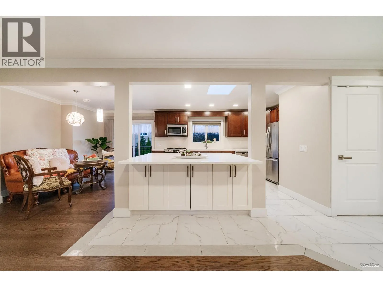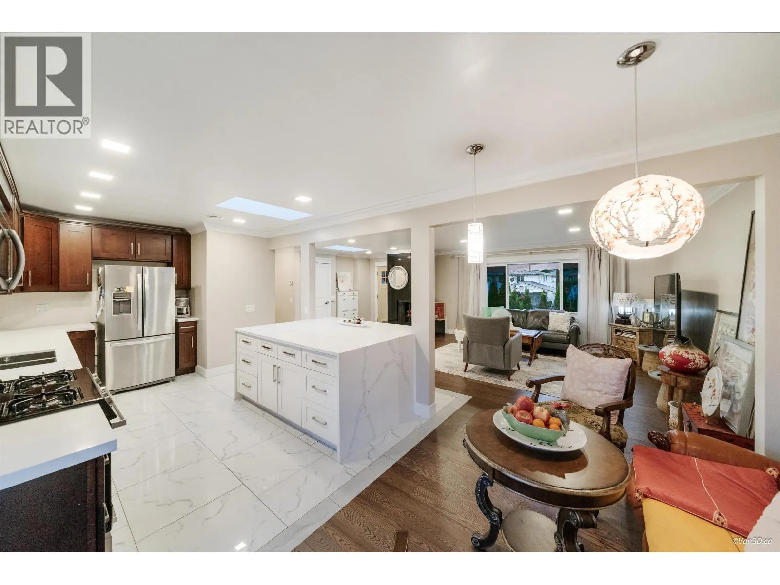 Completely renovated in 2022, this move-in-ready home is situated in a quiet cul-de-sac in one of the most desirable neighbourhoods in Tri-Cities. The large open floor plan features all new electrical (200 AMP), plumbing, windows, roof, solid hardwood flooring, and glazed natural tiles. Enjoy two new solid-wood kitchens with quartz countertops, islands, and stainless steel appliances, plus 3 radiant-heated bathroom floors, R24 insulation down, sound-proofed ceilings, two skylights, and a beautifully landscaped garden. Additional upgrades include a new furnace (2021) and a tankless hot water heater, making this feel like a brand-new home. The lower level offers a separate 3-bedroom legal suite with its own electric meter for fully independent living. Open house: Dec 20-21 2-4PM (id:27476)