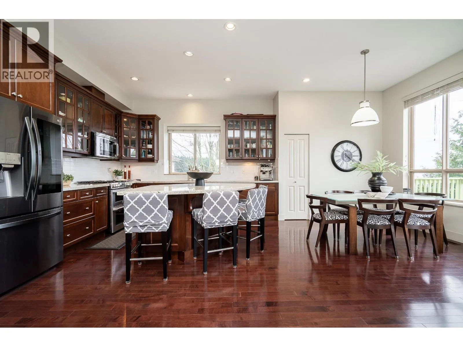 Welcome to the top of Port Moody´s prestigious Heritage Woods neighbourhood, with unparalleled VIEWS and one of the largest lots on the cul-de-sac. This 4,100+ sq/ft original-owner home offers 6 bdrms + den and 3.5 bath - perfect for a growing family. Open concept layout on the main with 10´ ceilings, hardwood floor and a gourmet kitchen with large island + SS appliances. Spacious office could double as a main floor bdrm. Direct access from kitchen leads to the expansive deck with breathtaking views, ideal for entertaining. Large primary up with spa-inspired ensuite and vaulted ceiling, plus 3 additional bdrms. Fully finished basement with separate entry and covered deck, plus 2 more bdrms. A/C, new furnace + new hot water tank. Situated in one of the most sought-after school catchments. (id:27476)