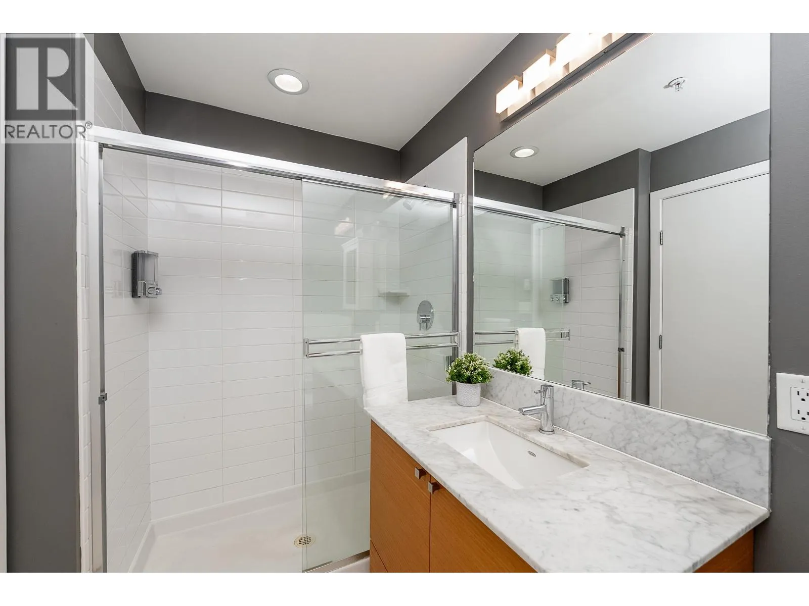 With one of the largest plans in the building, this corner home in sought-after Suter Brook Village offers a bright and spacious floor plan, and an incredibly convenient location. Offering urban convenience combined with nature, this 2 bed, 2 bath home features over 1,060 square feet of living space with oversized windows, a spacious kitchen with stone counters, SS appliances, gas cooktop, and separated bedrooms. Covered balcony overlooking greenery, 2 parking and 1 storage locker. Plus, access to outstanding amenities at the Aria Club, with a fitness centre, indoor pool, party rooms and more. Steps from the SkyTrain, shopping, cafes and Rocky Point Park. The perfect home for first time home buyers, down-sizers and investors. (id:27476)