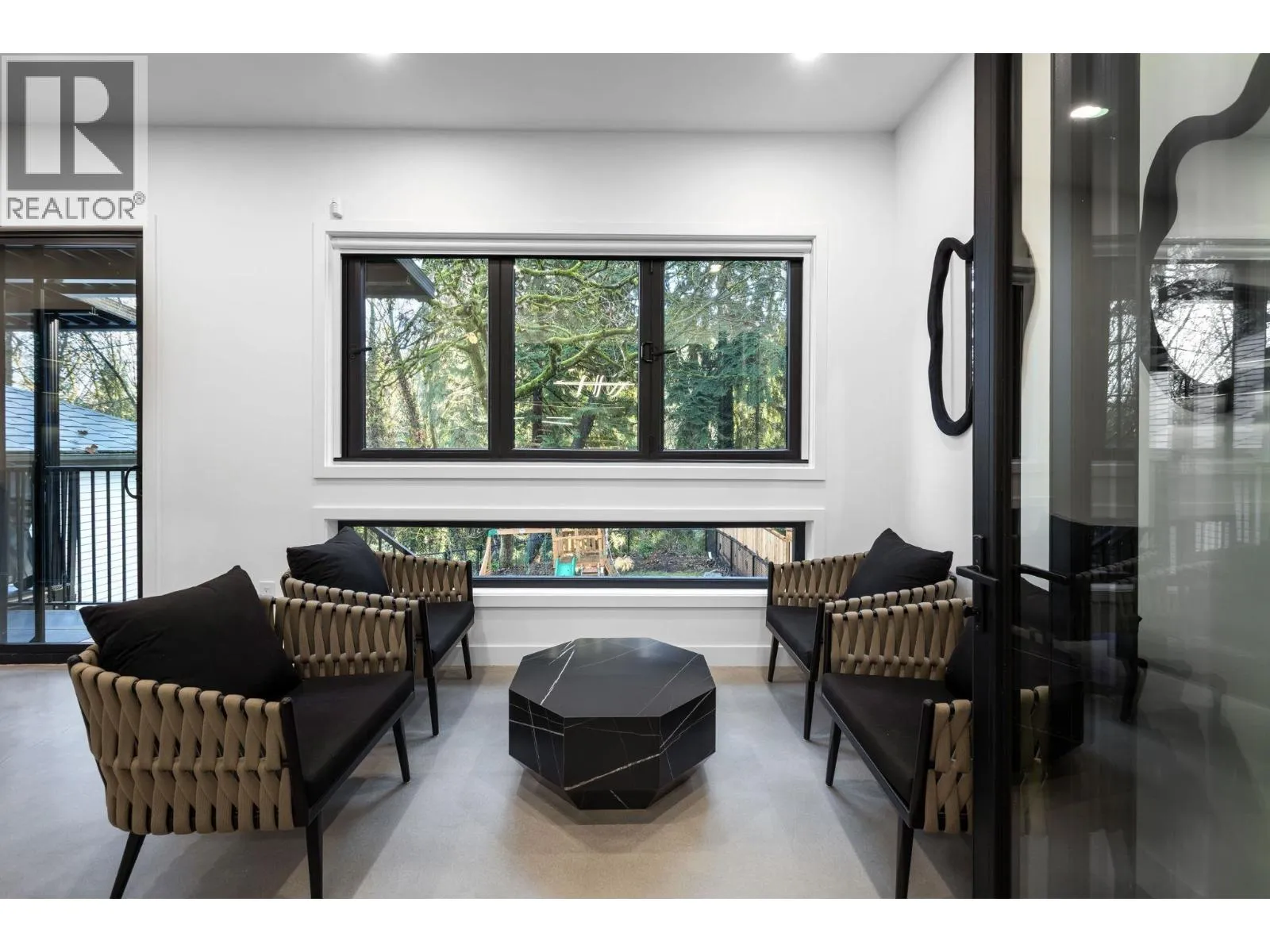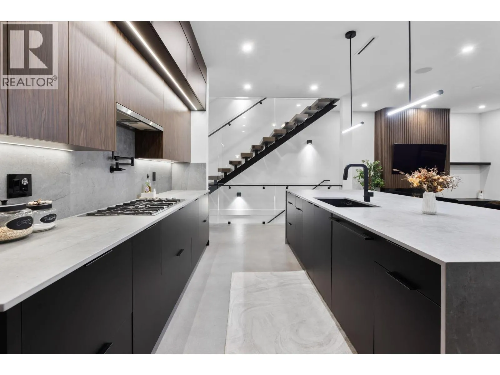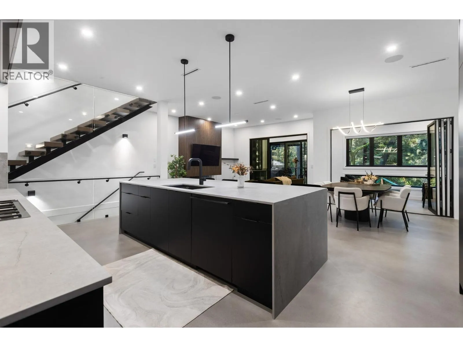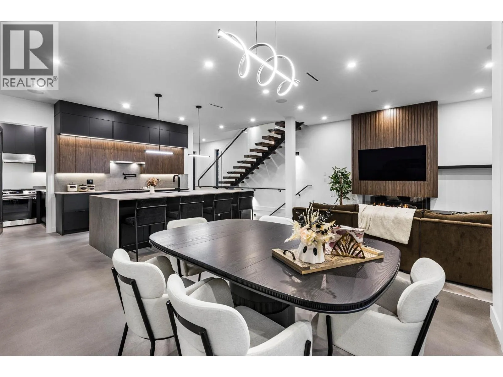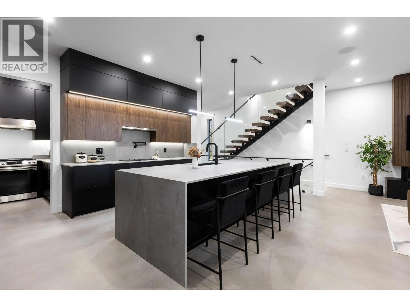 Luxury redefined in Port Moody! This show stopping luxury build has had no expense spared. Designed and finished with longevity and quality at the forefront. Experience polish concrete floors, high end cabinets, floating stairs and so much more in this truly one of a kind luxury home. Outside is finished with aluminum siding and ACM cladding for a look that will stay looking brand new for decades to come. Main living open concept featuring luxurious bar and sunroom. Upstairs had large primary bedroom with spa ensuite and 3 additional bedrooms. Reinforced rooftop ready for hot tub and features built in speakers. Bonus two bedroom suite easily convertible to one bedroom if more space in wanted for primary living. Come see this spectacular home and be wowed! (id:27476)