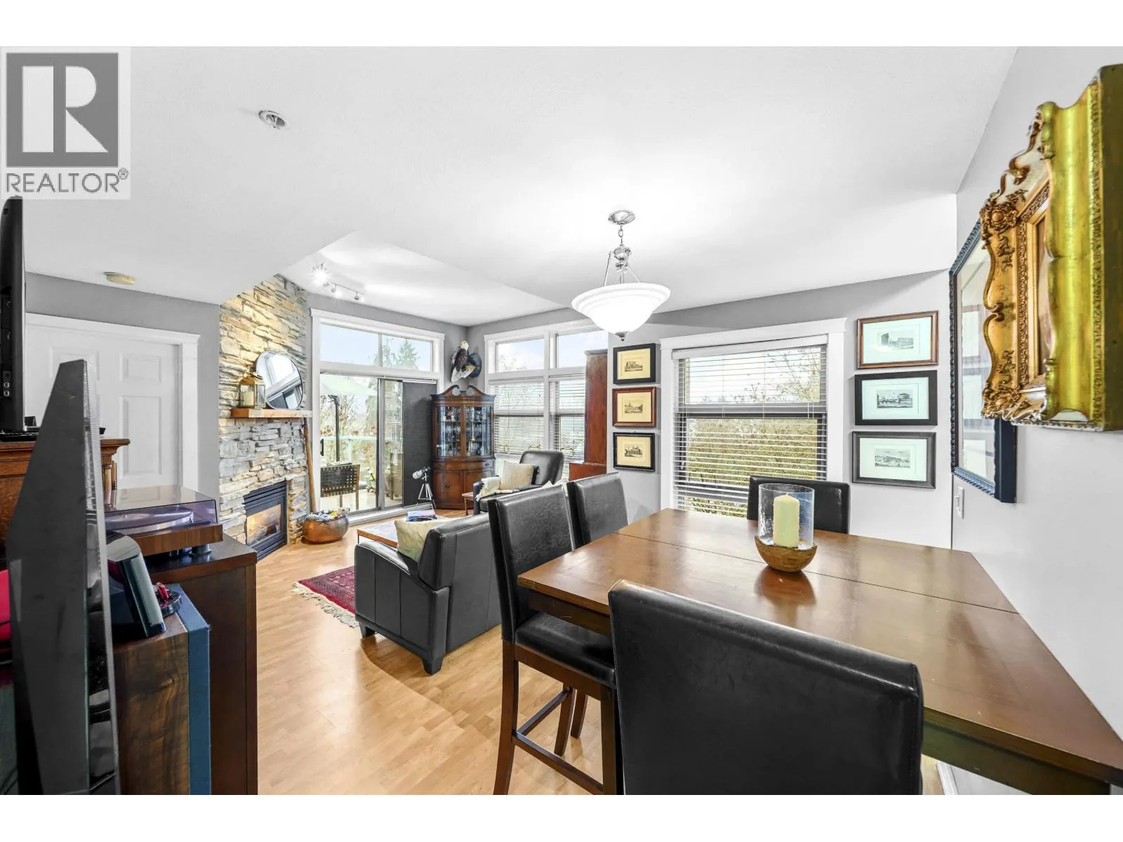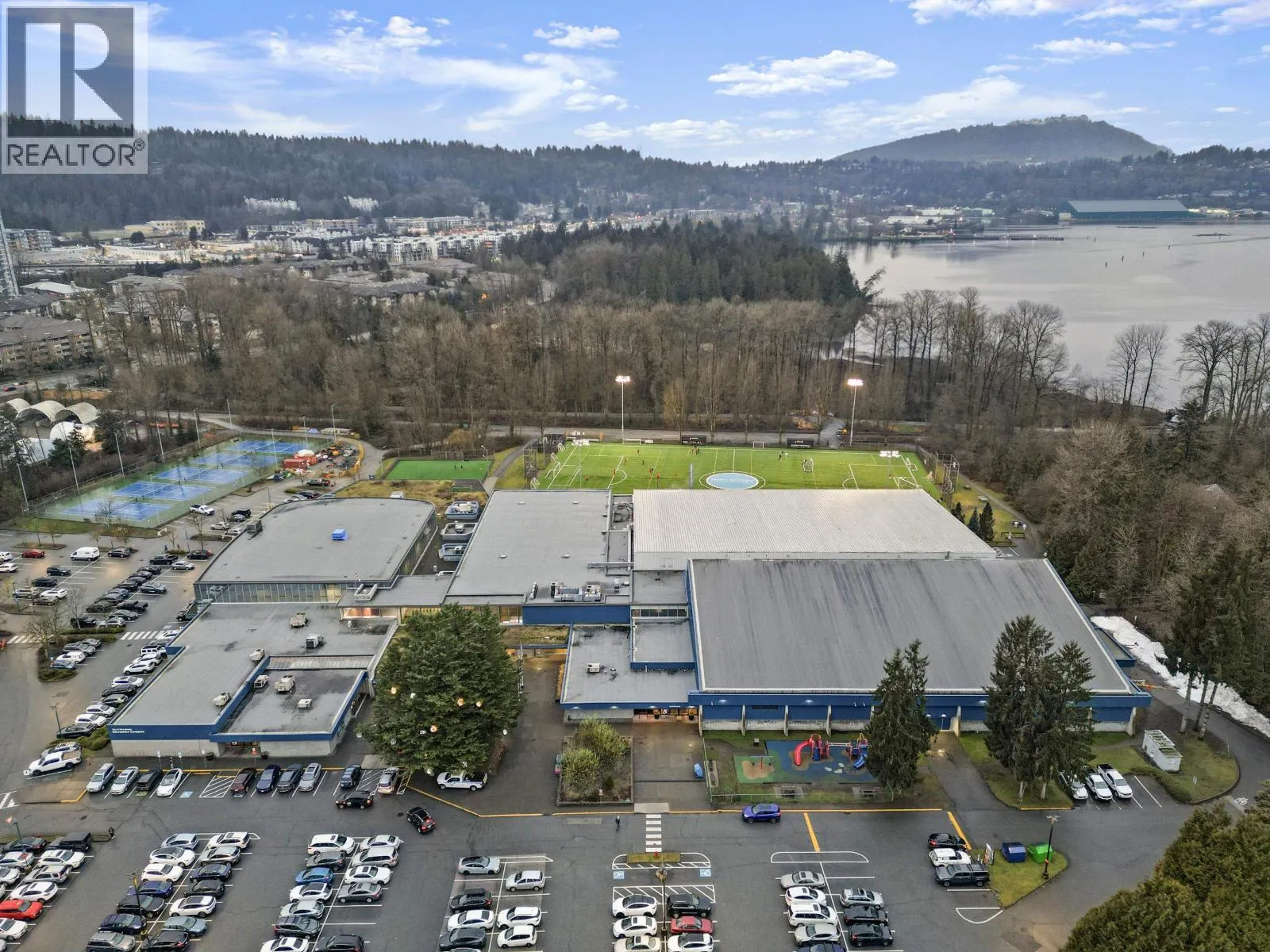 Rarely available TOP FLOOR - CORNER END UNIT - Truly the best in the complex! 2 bed, 1 bath. 2 PARKING & Southeast facing views! Expansive windows fill the home with natural light, creating a refreshing cross-breeze throughout. Living/kitchen are enhanced by dramatic high ceilings adding character to the space. Impressively spacious kitchen with ample cabinetry, generous counter space & cozy eating nook. Living area is anchored by a floor-ceiling brick gas fireplace enhancing warmth & style. Steps to Inlet Skytrain, Newport Village & Suterbrook, boutique shops, cafes, iconic Rocky Point, Shoreline trails and Orchard Beach for endless kayaking & paddle boarding. Perfect for outdoor enthusiast. Bright, spacious & private. (id:27476)