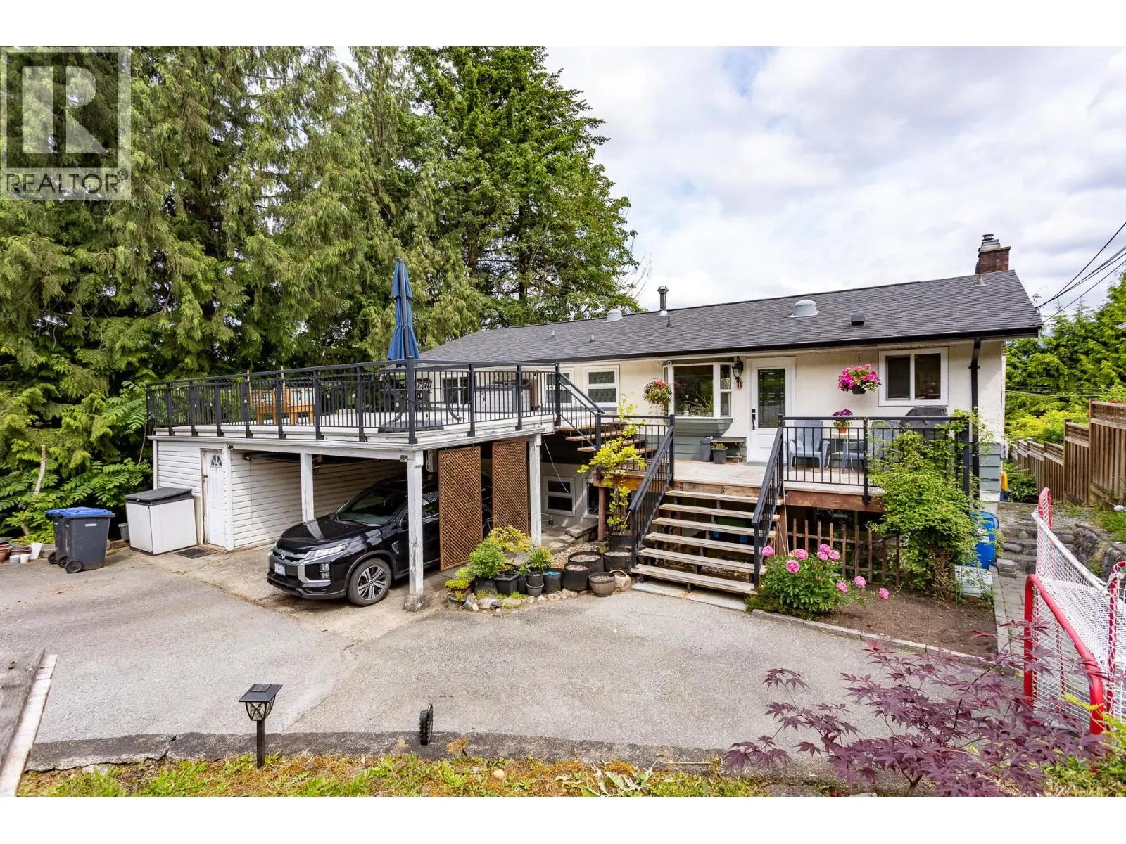 A rare opportunity in the heart of Port Moody! This home features 5 bedrooms and 3 bathrooms, including a self-contained suite with a separate entrance, perfect for rental income or extended family. Modern S/S appliances, gas stove in both kitchens. Upper level features 3 well sized bedrooms with ensuite in primary. Lower level has a bright and open floor plan with 2 bedrooms and access to shared laundry room. Ample parking from rear lane with driveway and a double carport. Enjoy mountain and inlet views from this prime located property, just steps from all levels of schools, shopping, restaurants, Rocky Point Park, Brewers Row, the SkyTrain, and West Coast Express. Development potential- This 66' x 132' (8,707 sqft) lot that meets the new provincial zoning regulations for 4 to 6 units. (id:27476)