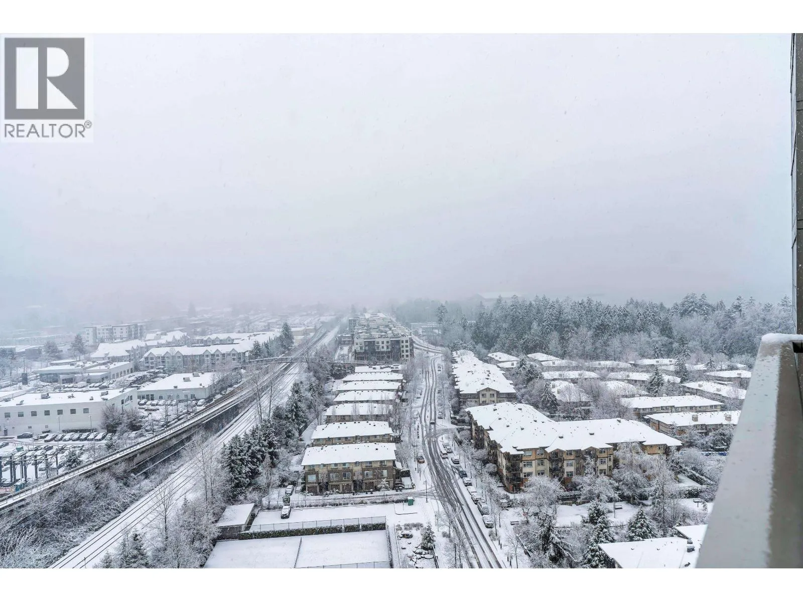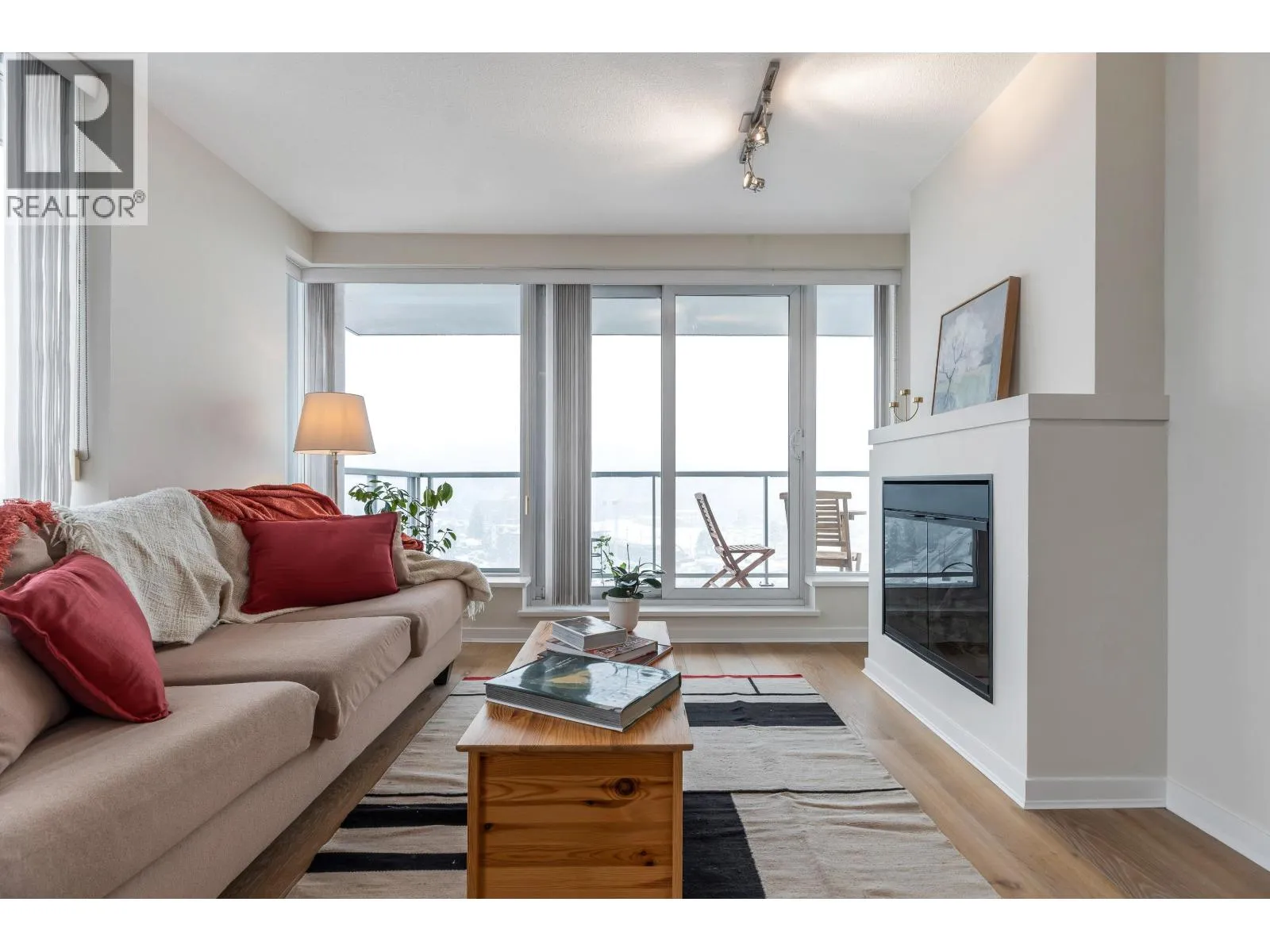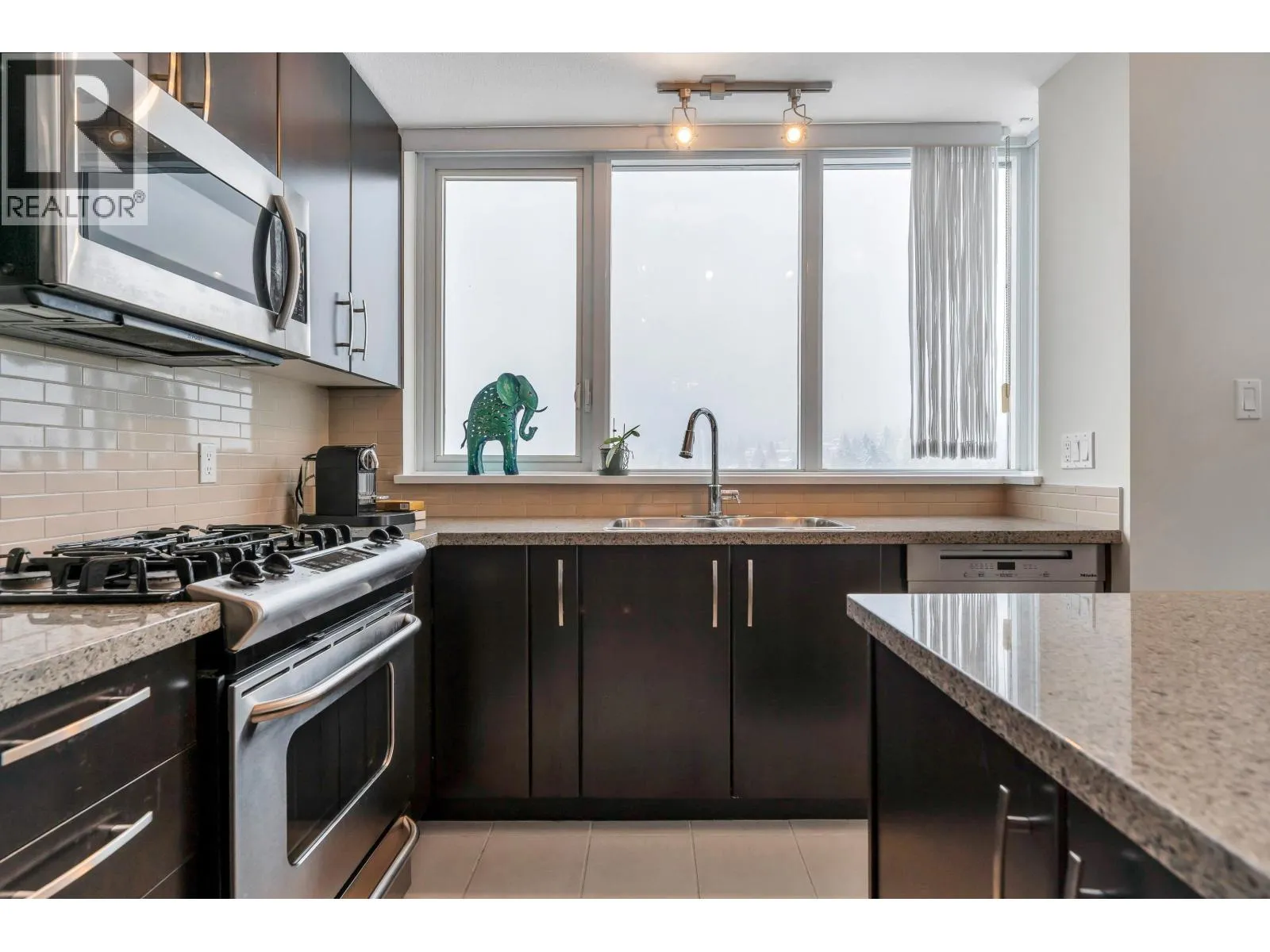 This sun-drenched corner unit offers an exceptional urban lifestyle with sweeping views of the water, mountains, and city skyline. With premium engineered wood flooring updated a few years ago, the home feels bright, modern, and well cared for. The open-concept layout features a gourmet kitchen with granite countertops, stainless steel appliances, and a rare view window above the sink. A fireplace and 100 sq. ft. balcony add comfort and charm. Two spacious bedrooms sit on opposite sides for privacy, each with its own ensuite. Enjoy Canoe Club amenities and a prime location near SkyTrain, Rocky Point trails, and Newport Village. (id:27476)
