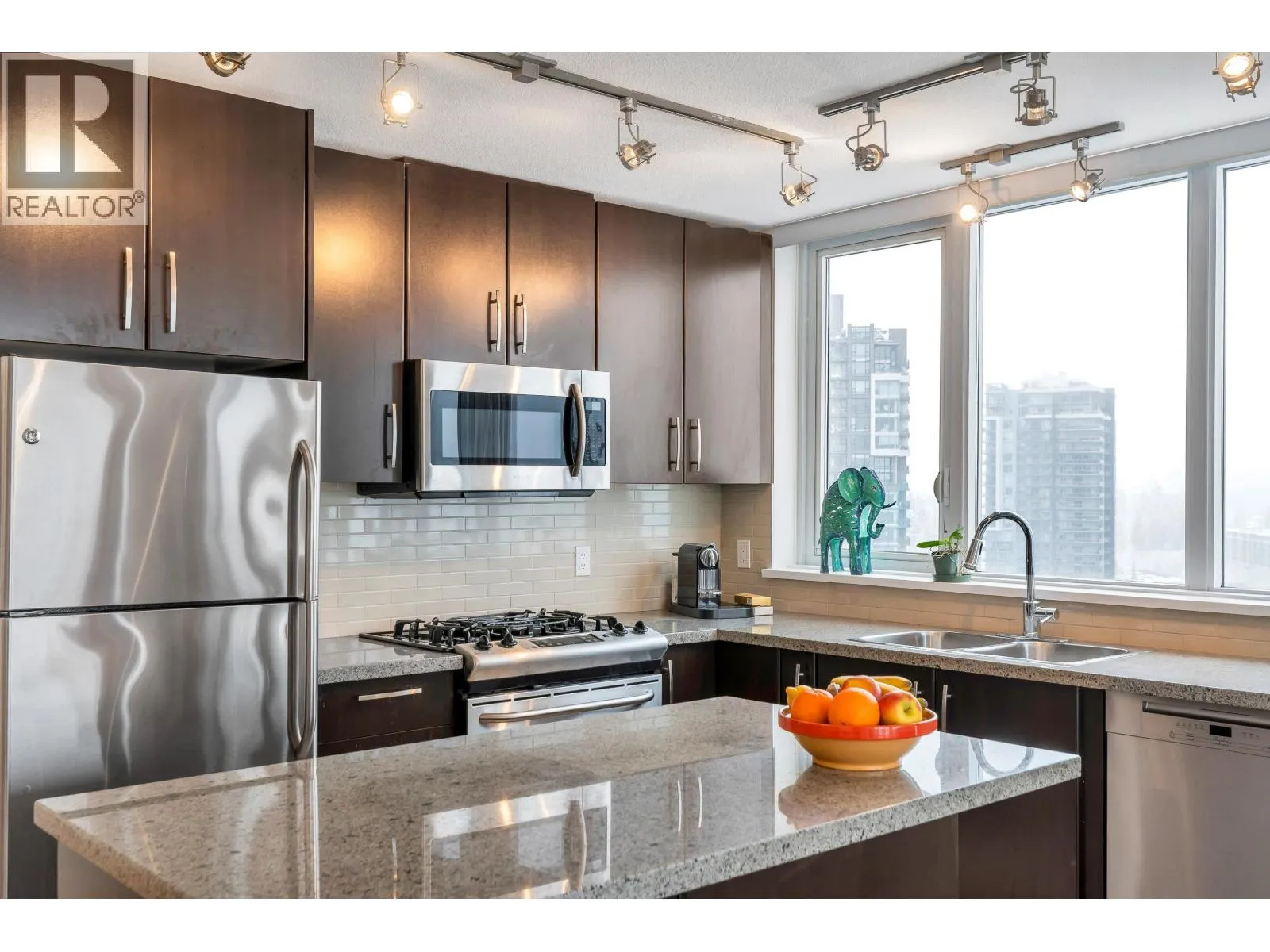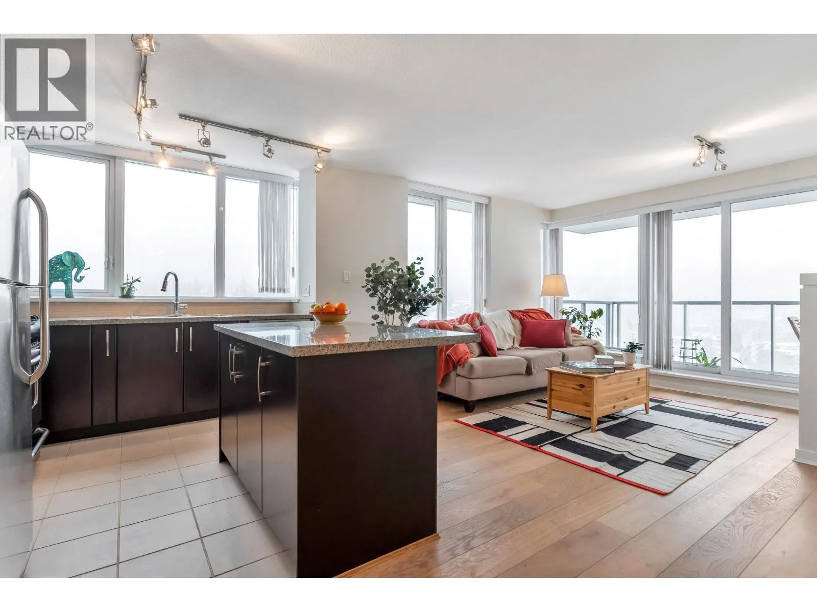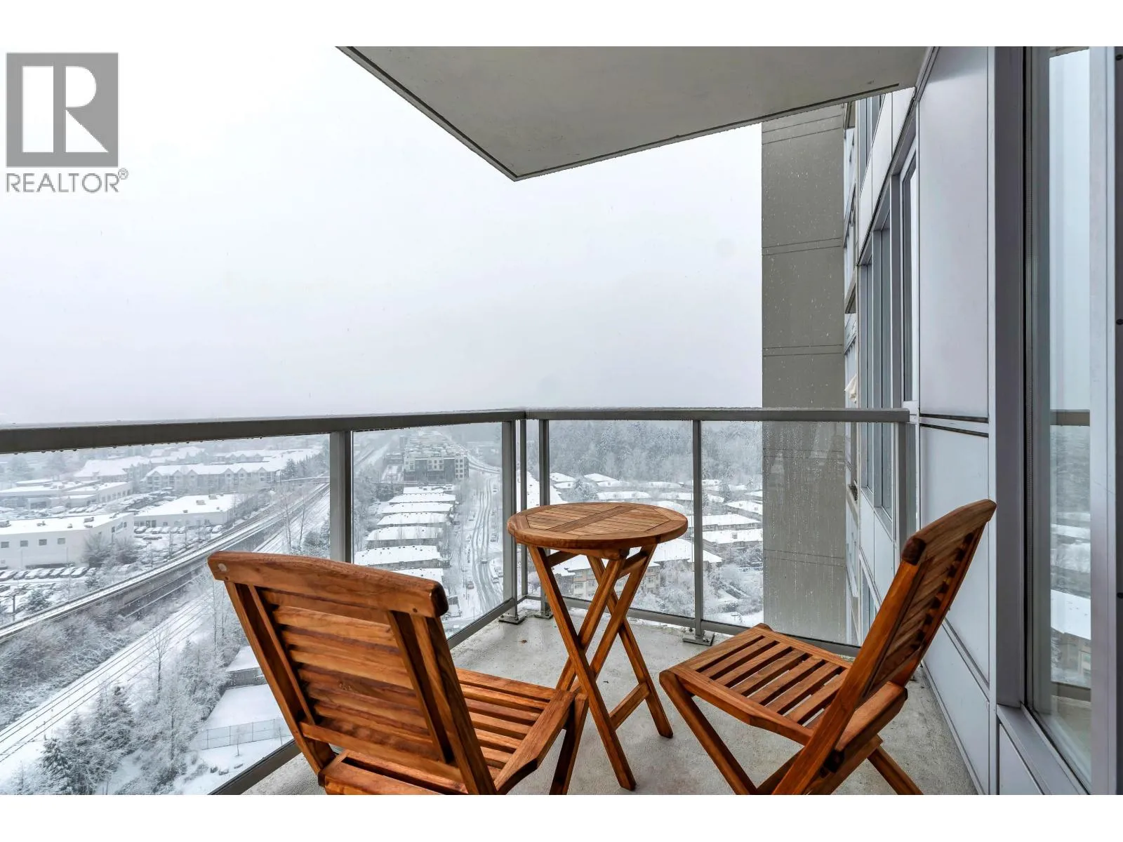This sun-drenched corner unit offers an exceptional urban lifestyle with sweeping views of the water, mountains, and city skyline. With premium engineered wood flooring updated a few years ago, the home feels bright, modern, and well cared for. The open-concept layout features a gourmet kitchen with granite countertops, stainless steel appliances, and a rare view window above the sink. A fireplace and 100 sq. ft. balcony add comfort and charm. Two spacious bedrooms sit on opposite sides for privacy, each with its own ensuite. Enjoy Canoe Club amenities and a prime location near SkyTrain, Rocky Point trails, and Newport Village. (id:27476)