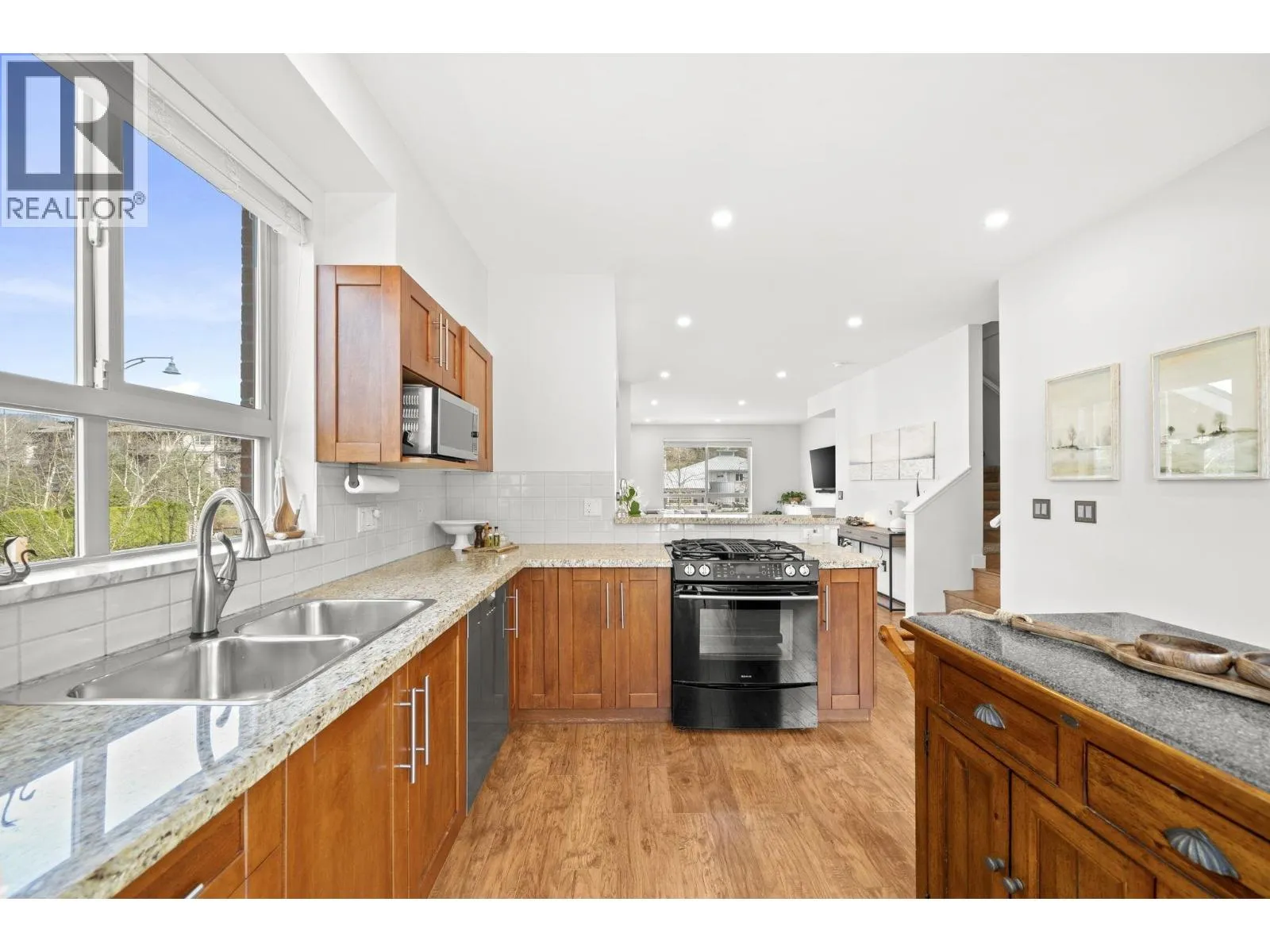 Ideally located in Klahanie, this UNIQUE corner end-unit in "Currents" offers 3 beds, 2.5 baths, and 1,751 SF of bright, open-concept living. The private, sun-filled backyard features upgraded tiles, turf, and a gazebo perfect for relaxing and entertaining. Overheight ceilings and floor-to-ceiling windows fill the home with natural light. The kitchen boasts a large island, custom storage solutions, gas range, stainless steel appliances, and stone countertops, plus a new electric fireplace with built-in cabinets. The renovated primary ensuite includes heated floors and custom storage. Private garage with bonus living space downstairs. Access to the exclusive "Canoe Club" with resort-style amenities including outdoor pool, hot tub, sauna, gym, basketball and tennis courts. Trails, Rocky Point Park, Suter Brook, Newport Village, and Port Moody Ale Trail nearby! (id:27476)