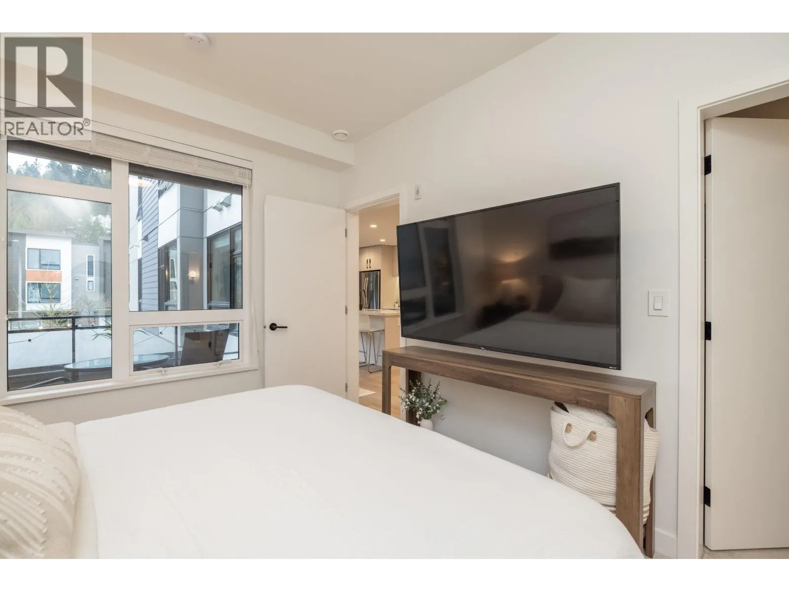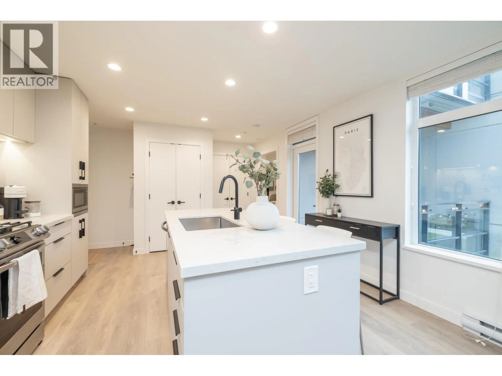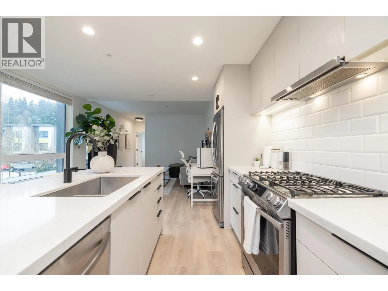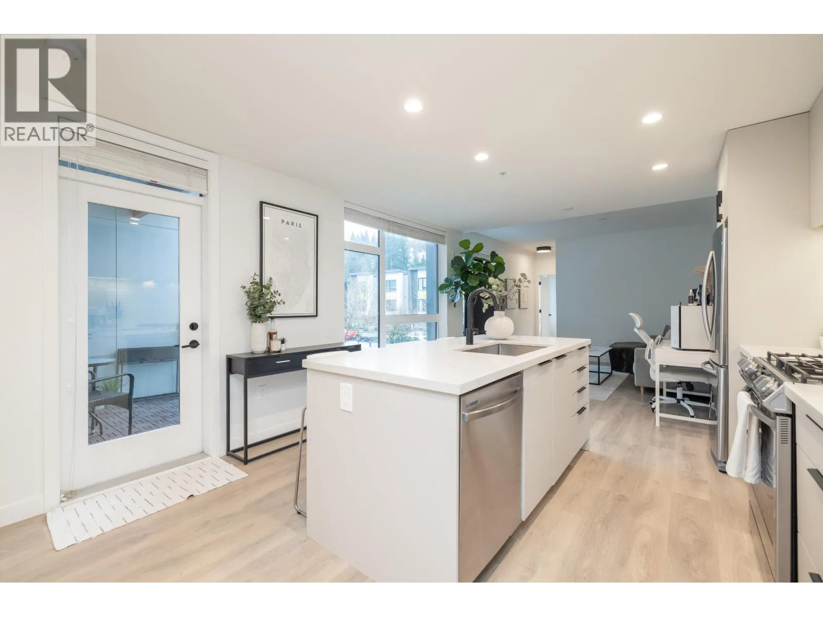 Fabulous living in Port Moody, with shops, restaurants, trails, parks, and more all outside your door! Welcome to this 936 square ft 2 bdrm 2 bathroom END UNIT (no neighbours below) in the George, steps to the vibrant community yet located on a quiet street making it the perfect location. Kitchen has stylish cabinetry, quartz, island/prep space with seating for 3, and S/S appliances including gas & built in microwave. Bedrooms are located on opposite sides for privacy, and primary has a large walk in closet and a 4 pc beautiful ensuite. This home has been lovingly maintained and is move in ready! Great amenities, and 1 parking, 1 storage. Commuters will love the quick access to the West Coast Express and the Skytrain millennium line. Enjoy Rocky Point Park, Newport Village, Brewery Row and more! (id:27476)