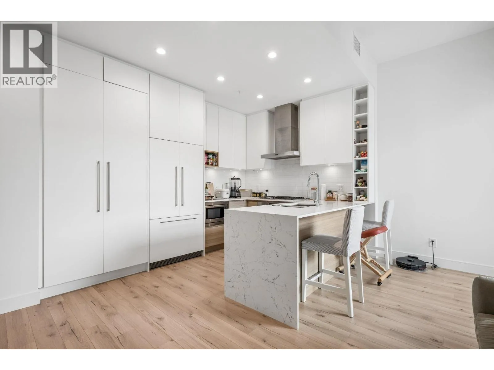 This beautifully designed 1 Bed & DEN! offers modern, open-concept living with soaring ceilings, oversized windows, and premium finishings throughout. The chef-inspired kitchen is the centrepiece, featuring a stunning quartz waterfall island, gas cooktop, and custom pantry-perfect for both everyday living and entertaining. The spacious bedroom includes a large, thoughtfully organized closet, while the functional layout maximizes comfort and style.Located just steps from Brewers Row, Rocky Point Park, the Shoreline Trail, and Moody Centre SkyTrain Station, you´ll be immersed in one of Port Moody´s most vibrant and walkable neighbourhoods. Enjoy resort-style amenities including a full fitness centre, co-working space, indoor & outdoor children´s play areas, residents´ lounge and more! (id:27476)
