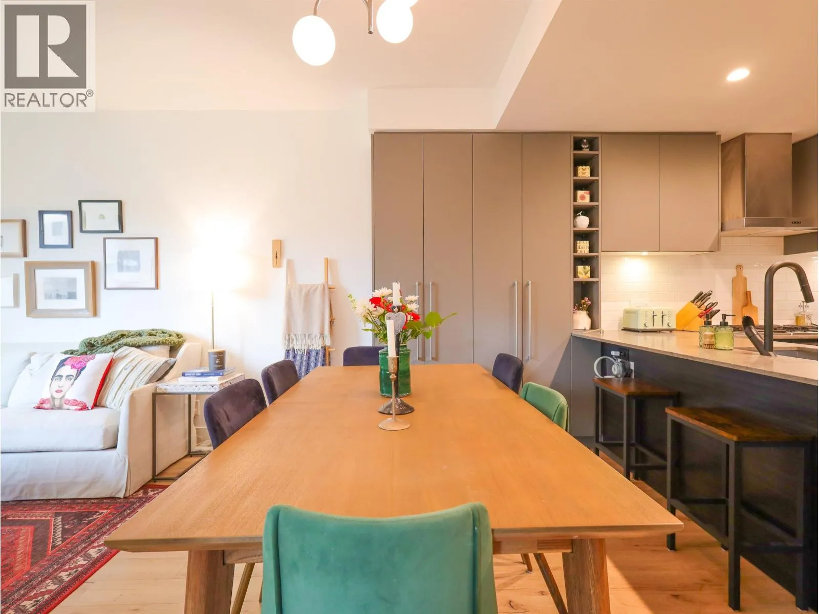Corner unit with awesome southwest-facing private patio right by the amenities. Terrific floor plan. High ceilings throughout and natural light gets to every room in the place. Great finishings and a very open layout. Primary bedroom has a walk-in closet and en-suite with shower. Tons of in-suite storage in addition to two storage lockers plus one parking spot. Full-size washer/dryer. The amenities in the complex are really outstanding. Shared work spaces you will actually use, plus kids play areas, adult lounges, and a very well-equipped fitness centre. Guest suite $75/night. The location is very hard to beat with easy access to the Shoreline Trail and many fine eating establishments. Dogs ok. Cats ok. Max 2. (id:27476)