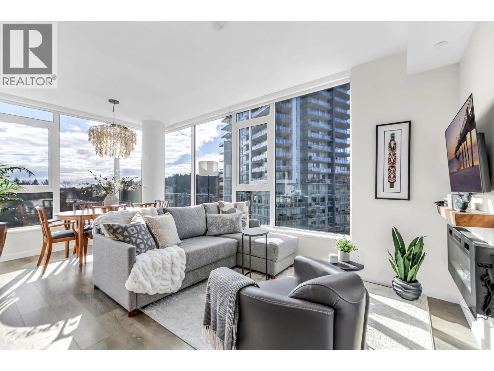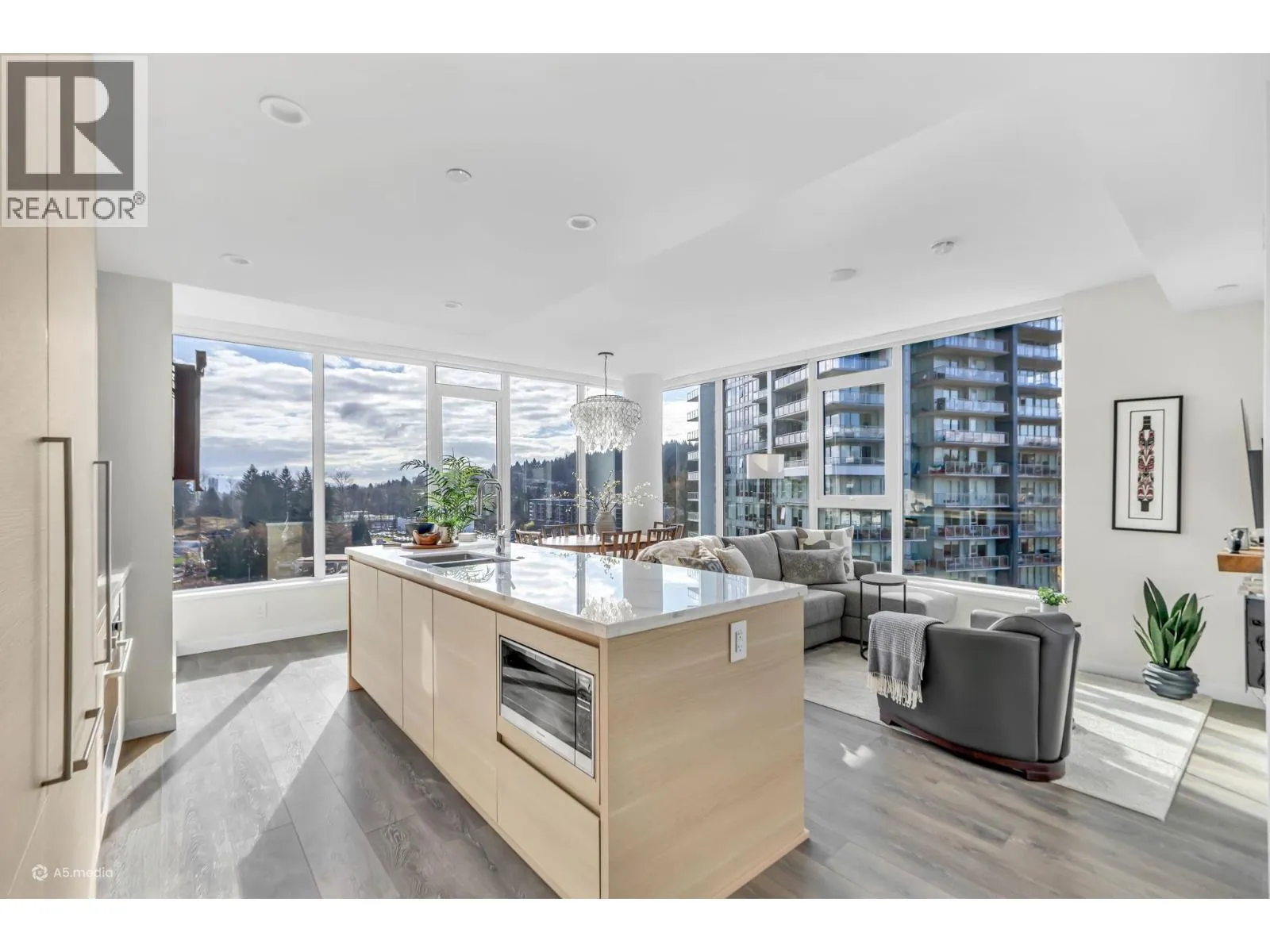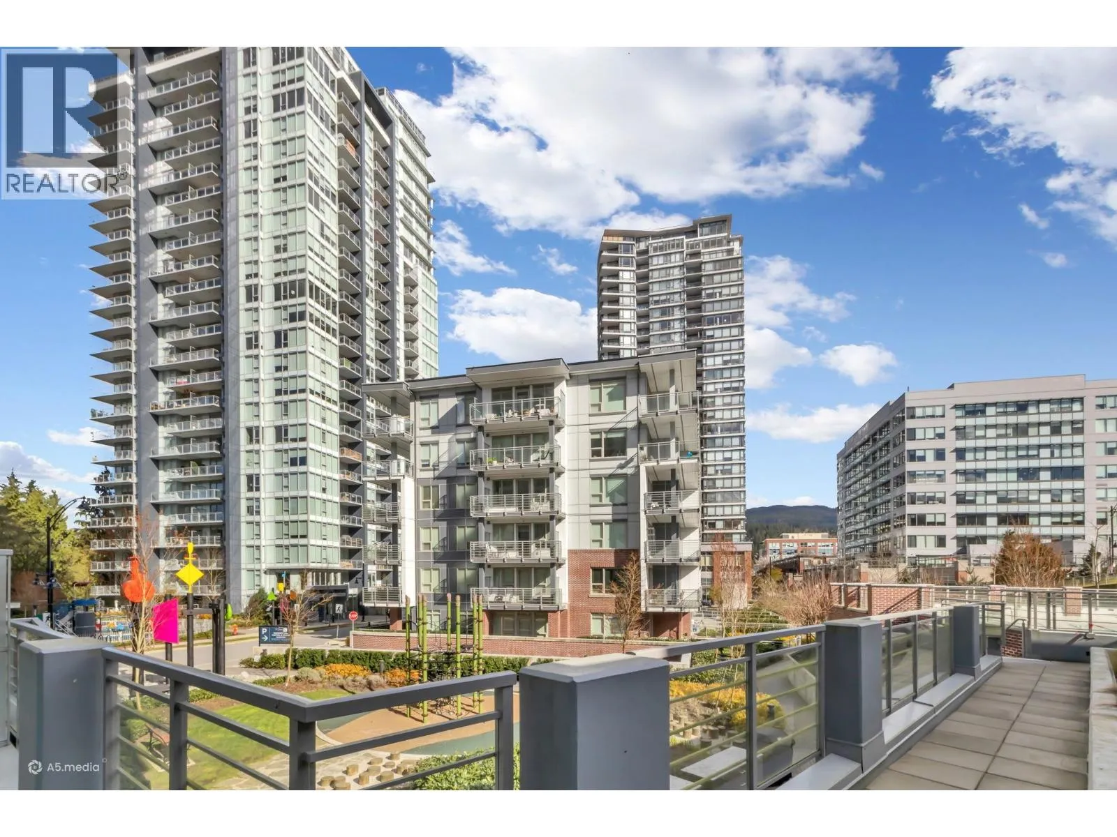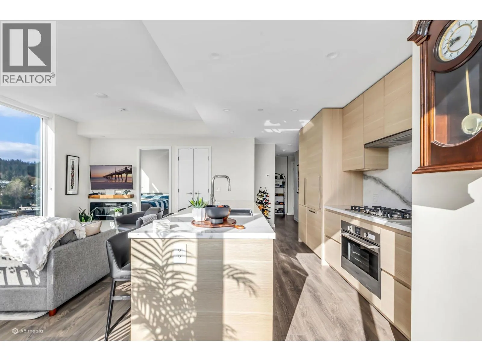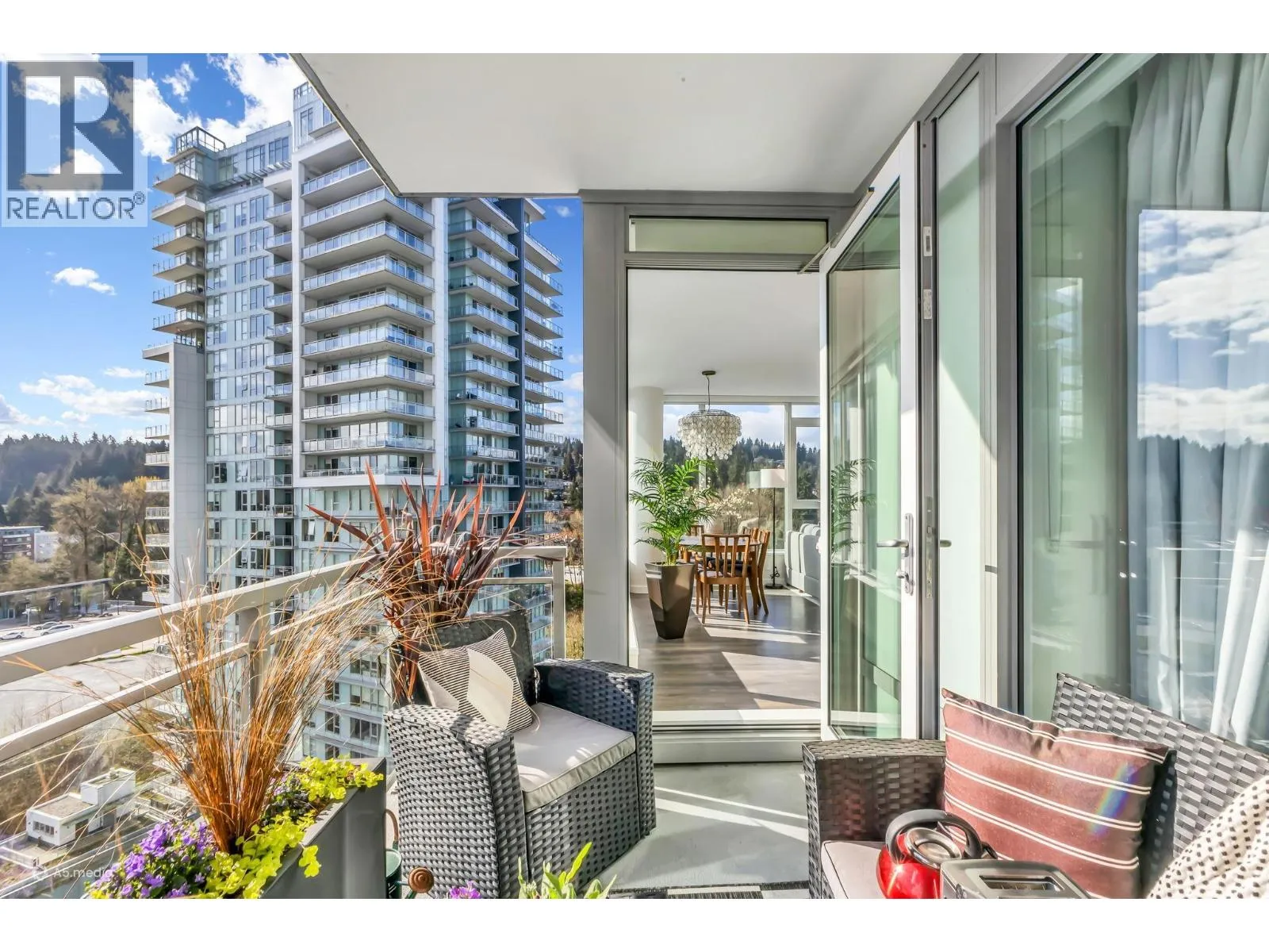 Welcome to The Grande in Suter Brook Village! This East-facing 2 bed 2 bath home offers 2 parking, 2 storage lockers, floor-to-ceiling windows with breathtaking mountain views and a lovely patio for morning sun. The spacious primary features a walk-in closet, a sleek ensuite with a frameless shower and NuHeat flooring. The gourmet kitchen is equipped with European appliances, a large marble topped island and space for formal dining. This home keeps you comfortable year-round with integrated cooling and heating. Amenities include an outdoor pool/ hot tub, golf simulator, playground, theatre and 2 fully equipped fitness rooms. Enjoy everything Port Moody is known for: boutique shops, great restaurants, craft breweries, the Inlet SkyTrain and Rocky Point Park all just moments from your door. (id:27476)