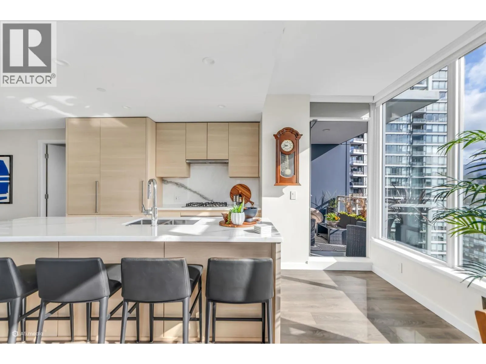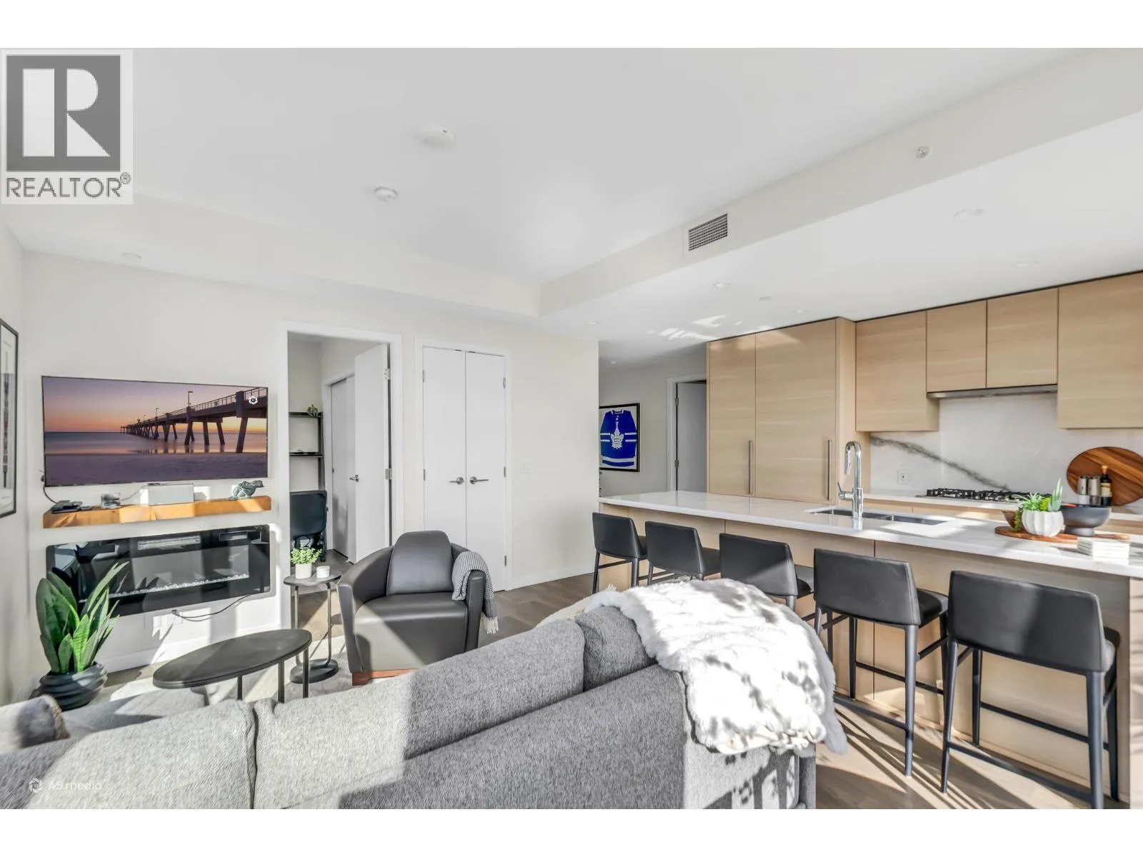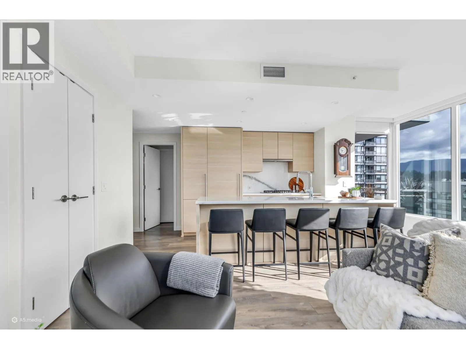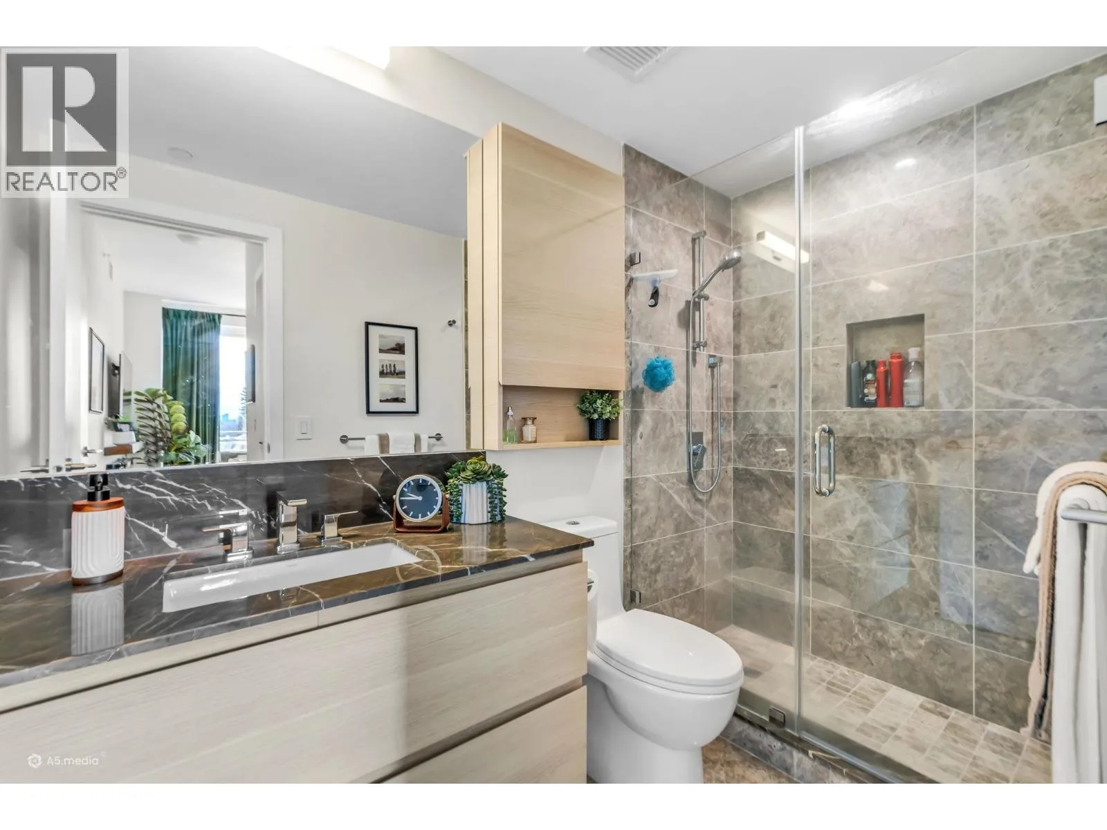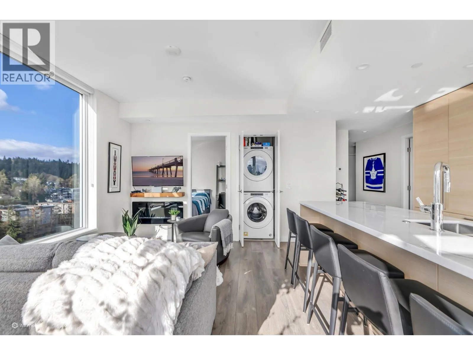 Welcome to The Grande in Suter Brook Village! This East-facing 2 bed 2 bath home offers 2 parking, 2 storage lockers, floor-to-ceiling windows with breathtaking mountain views and a lovely patio for morning sun. The spacious primary features a walk-in closet, a sleek ensuite with a frameless shower and NuHeat flooring. The gourmet kitchen is equipped with European appliances, a large marble topped island and space for formal dining. This home keeps you comfortable year-round with integrated cooling and heating. Amenities include an outdoor pool/ hot tub, golf simulator, playground, theatre and 2 fully equipped fitness rooms. Enjoy everything Port Moody is known for: boutique shops, great restaurants, craft breweries, the Inlet SkyTrain and Rocky Point Park all just moments from your door. (id:27476)