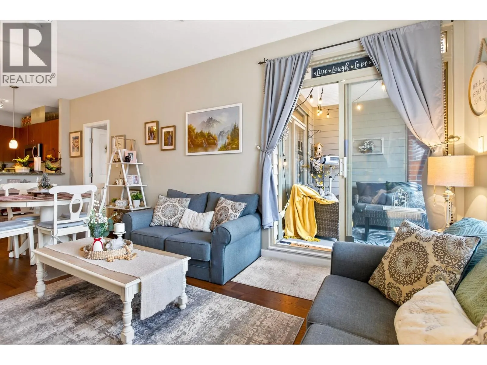 GREAT SUTER BROOK LOCATION! Great 2 bedrooms, 2 Bath & DEN. Open floor plan with 9' ceilings. Feature fireplace in the large living room, separate bedrooms on either side for privacy. Large kitchen with loads of cupboards, stainless steel appliances, granite counters and breakfast bar. Quality tile and hardwood flooring throughout. Primary bedroom with walk through closets to a full ensuite bath. Great Bonus is the large den and huge covered patio/deck area. Walk to everything, shopping, restaurants, Westcoast express, Skytrain. (id:27476)