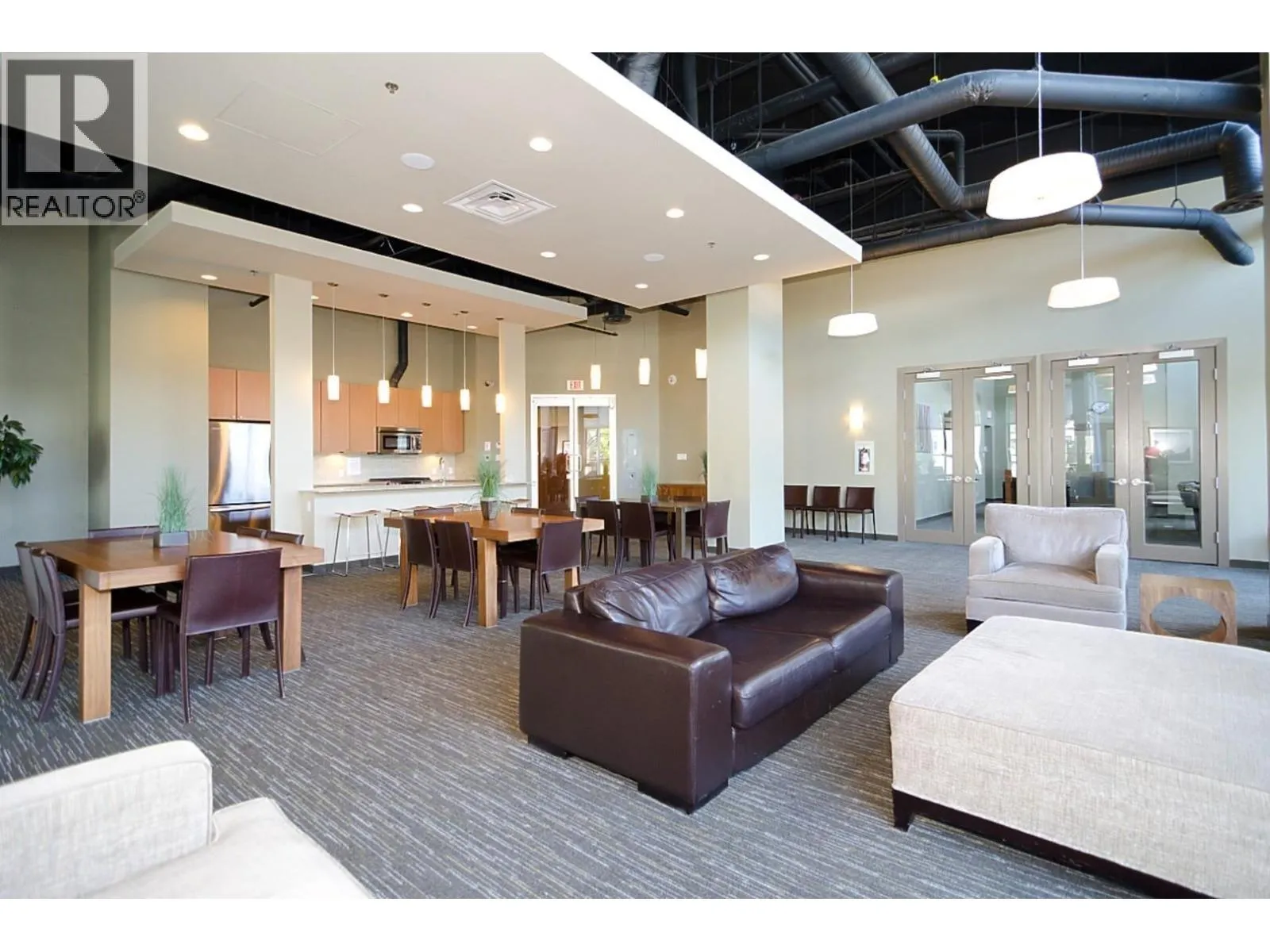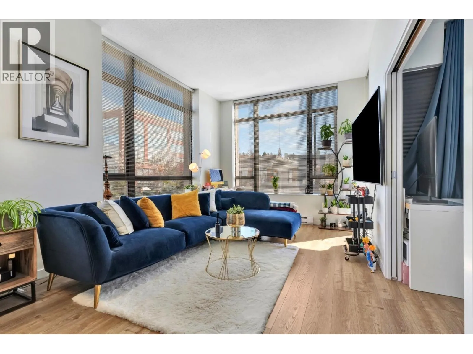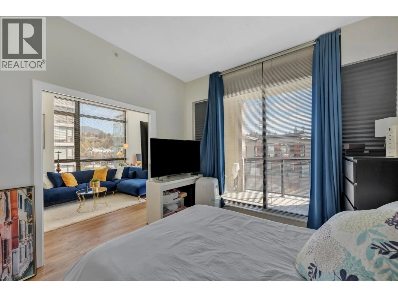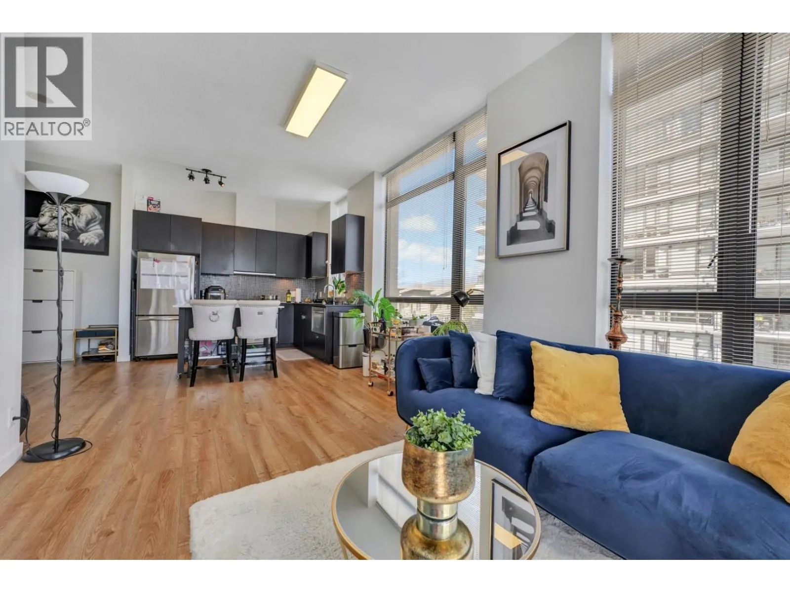 Prime corner 1-bedroom at The Brew in sought-after Suter Brook Village! This meticulous home features concrete construction, soaring windows, and a bright, modern living space with laminate flooring. Enjoy 10 ft ceilings and a stylish open-concept kitchen with stainless steel appliances, granite counters, glass tile backsplash, and gas range. Smart sliding pocket doors offer flexibility for open living or privacy. The spa-inspired bath includes a deep soaker tub, tiled shower, and granite vanity. Bedroom features a walk-in closet and access to a private balcony. Enjoy a 14,000 sq. ft. amenity centre with pool, gym, sauna, squash court, and more. Steps to shops, dining, and transit. 1 parking. pets allowed. (id:27476)