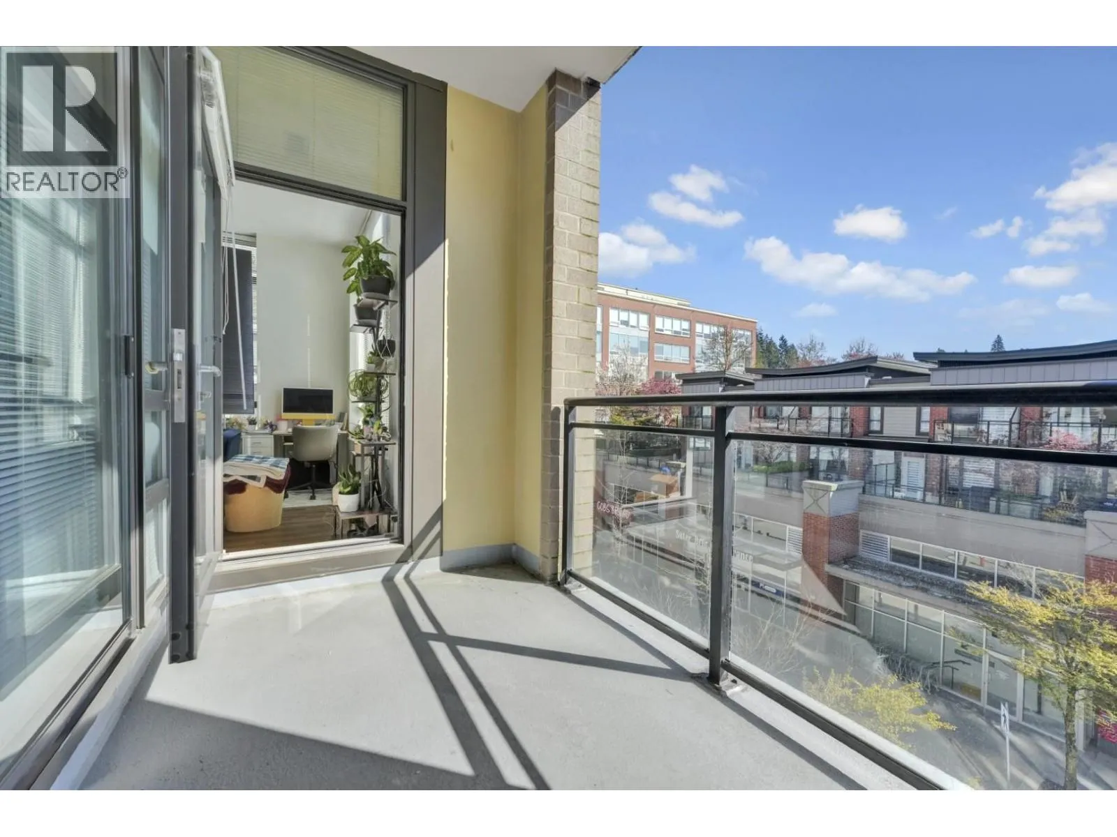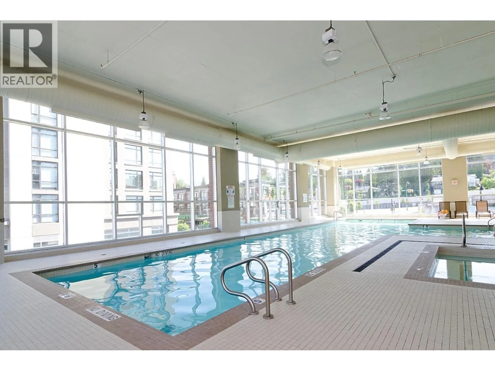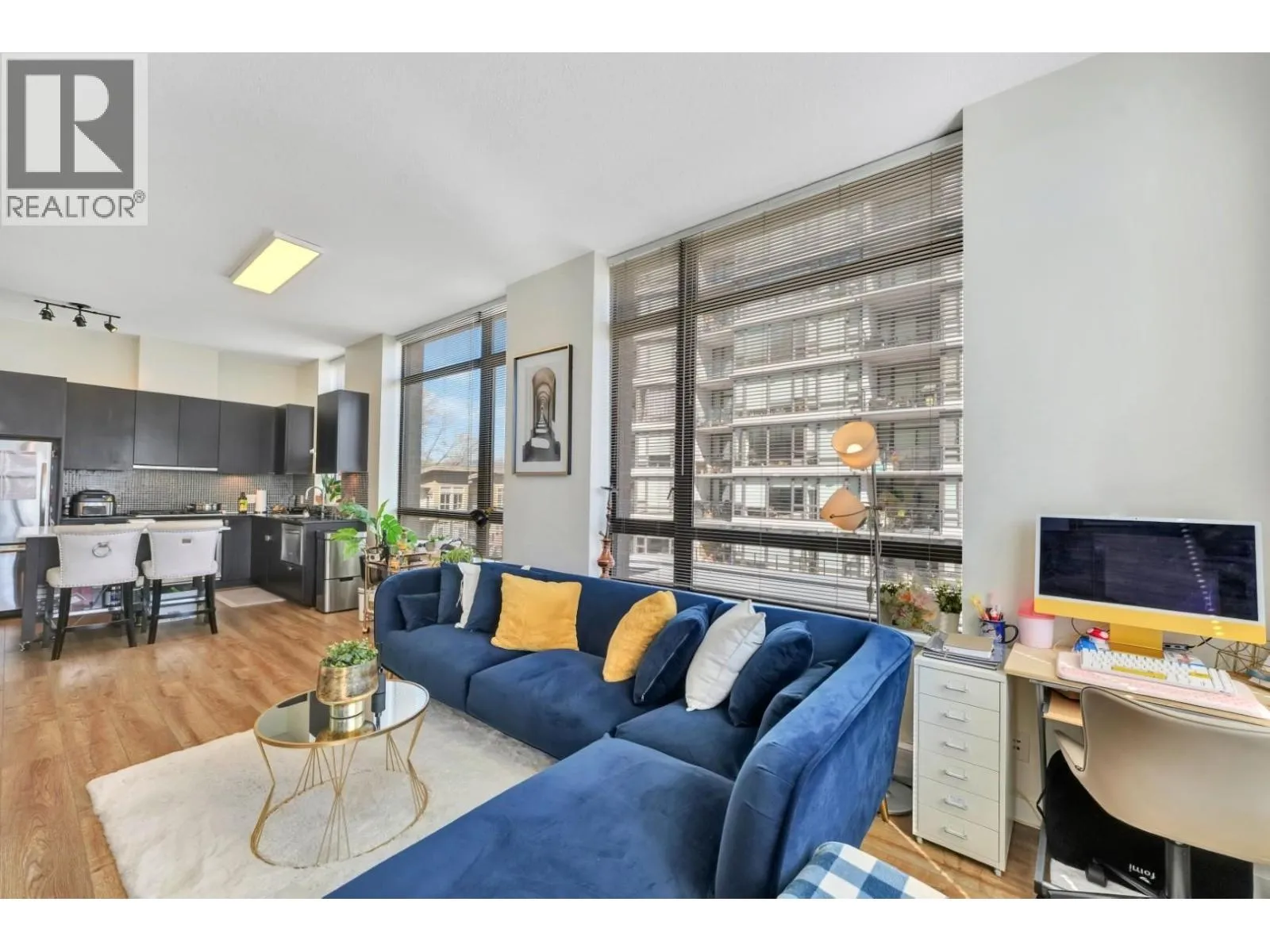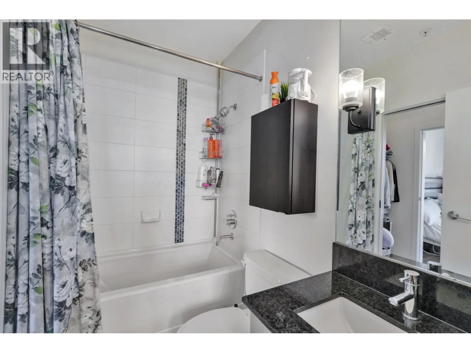 Prime corner 1-bedroom at The Brew in sought-after Suter Brook Village! This meticulous home features concrete construction, soaring windows, and a bright, modern living space with laminate flooring. Enjoy 10 ft ceilings and a stylish open-concept kitchen with stainless steel appliances, granite counters, glass tile backsplash, and gas range. Smart sliding pocket doors offer flexibility for open living or privacy. The spa-inspired bath includes a deep soaker tub, tiled shower, and granite vanity. Bedroom features a walk-in closet and access to a private balcony. Enjoy a 14,000 sq. ft. amenity centre with pool, gym, sauna, squash court, and more. Steps to shops, dining, and transit. 1 parking. pets allowed. (id:27476)