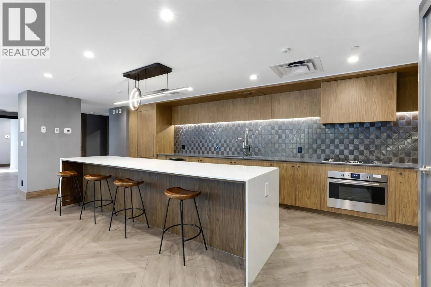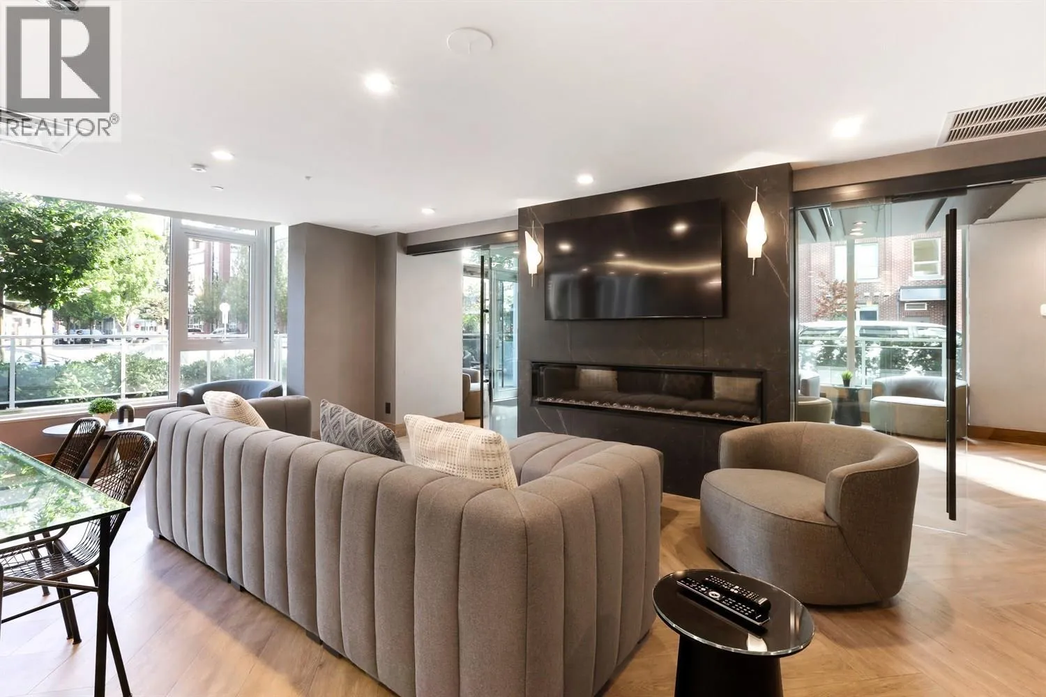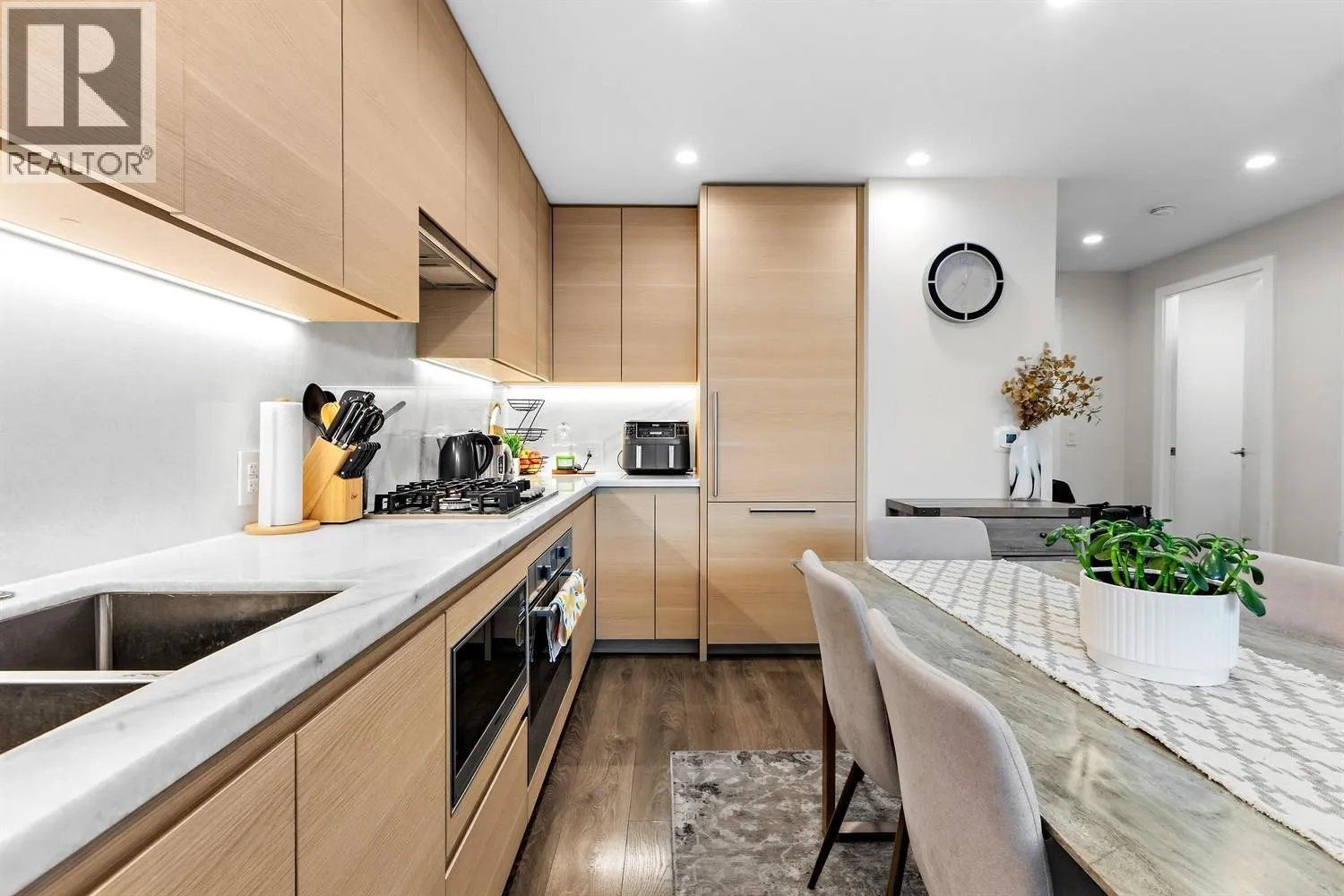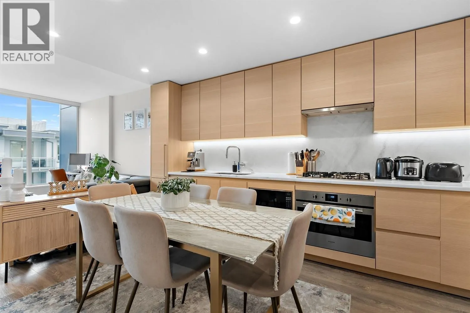 Welcome to this immaculate 1 bed & DEN condo in popular Suter Brooke. Featuring laminate flooring throughout & a spacious layout. This home is designed for comfort & style. The sleek kitchen boasts quartz counters, S/S appliances, GAS cooktop, built- in wall oven & pantry, perfect for the home chef. Enjoy comfort of AIR CONDITIONING 3pc bath has marble counters & tile flooring. Mountain views from this bright & airy home which truly shows like new. Enjoy impressive amenities such as golf simulator, outdoor pool, hot tub, sauna, gym, party rooms, guest suites, kids room & a theatre room. Walk to everything incl. Skytrain, Rock Point & Brewers Row. A perfect blend of urban convenience & natural beauty. 1 parking & 1 locker. AMAZING VALUE IN A PRIME LOCATION! (id:27476)