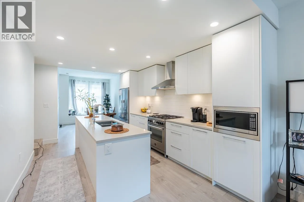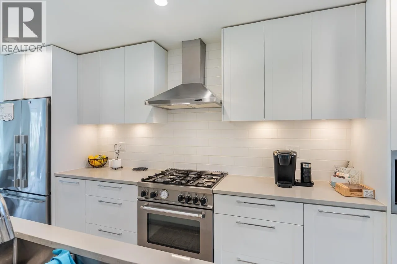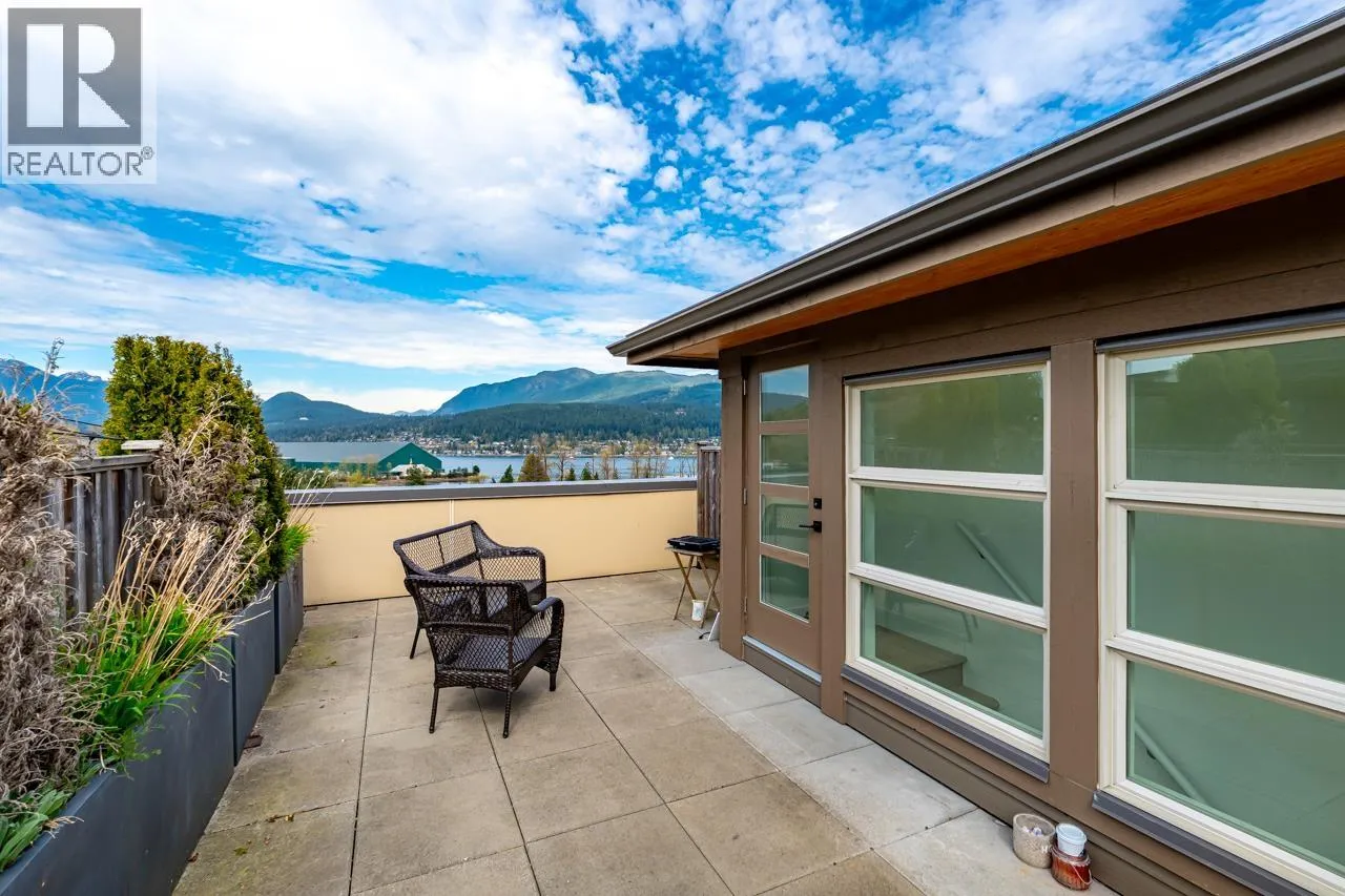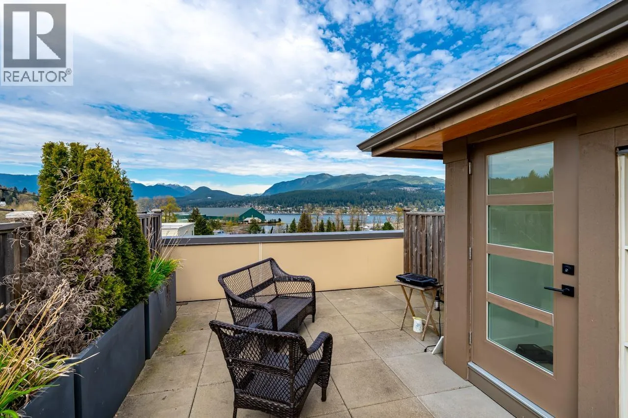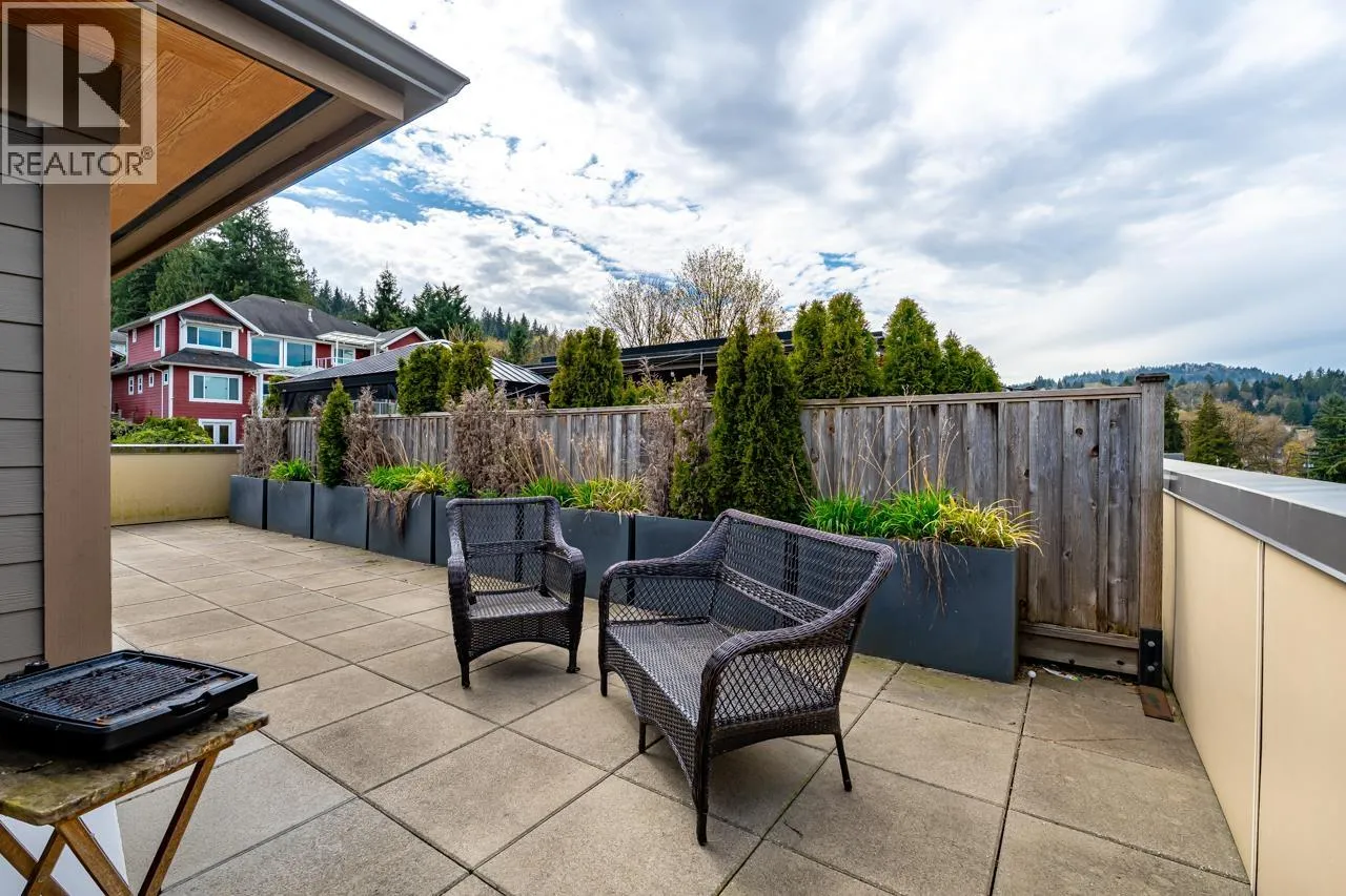 Three-level townhouse at Bayview Heights featuring an impressive 475 square ft rooftop patio w/mountains & Burrard Inlet views. This outdoor space is a true extension of your living area, complete with a gas outlet for a future outdoor kitchen. Open concept main flr offers a bright living and dining area, with the kitchen at the center, showcasing a large island, s/s appliances, gas stove, and ample white cabinetry. Two piece bath & laundry are also conveniently located on the main. Up features three bdrms and two full baths. The south-facing primary bedroom overlooks St. Andrews and includes a walk-in closet and ensuite w/shower. Tandem garage with additional storage. Boutique 15-unit complex close to Rocky Point Park, SkyTrain, Westcoast, shops, and more! First showing Thurs Apr 16 5-6 & Sat Apr 18 11am-1pm by appt (id:27476)