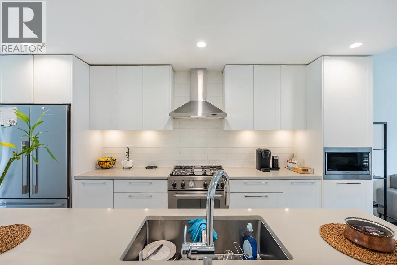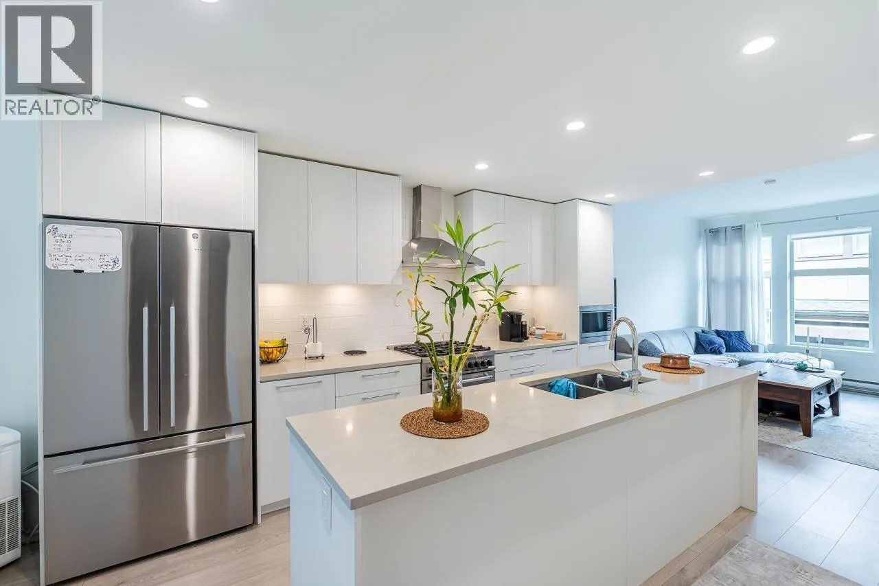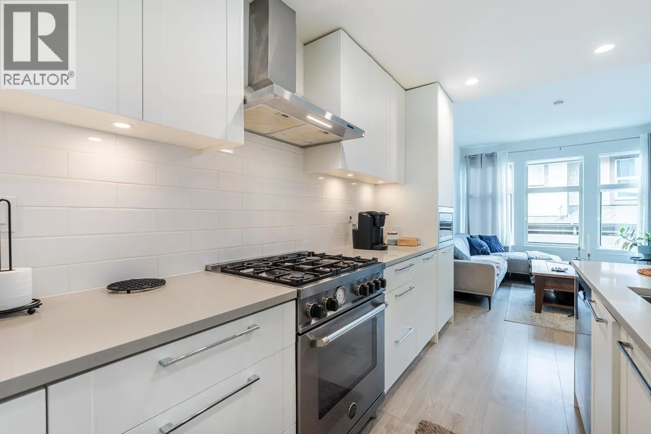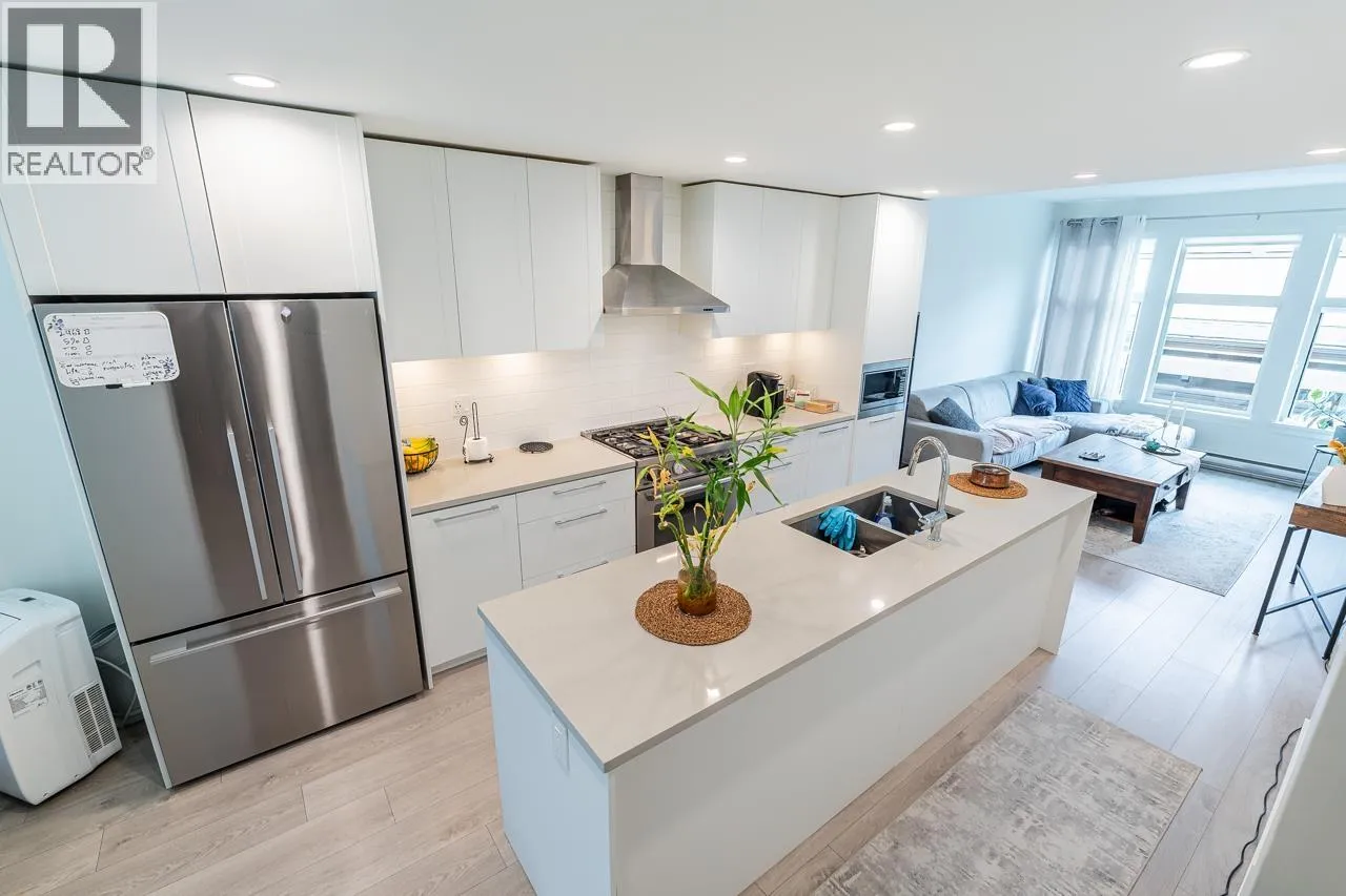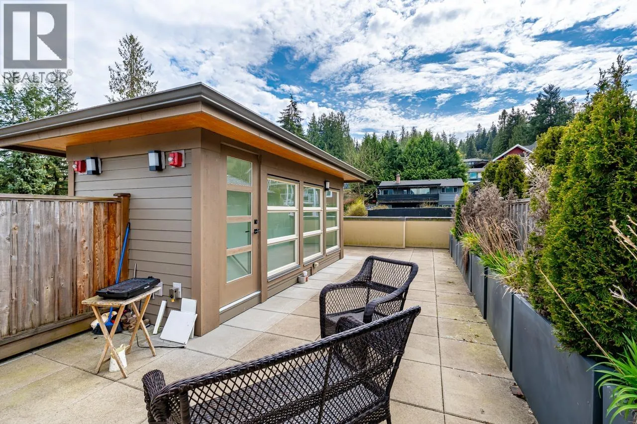 Three-level townhouse at Bayview Heights featuring an impressive 475 square ft rooftop patio w/mountains & Burrard Inlet views. This outdoor space is a true extension of your living area, complete with a gas outlet for a future outdoor kitchen. Open concept main flr offers a bright living and dining area, with the kitchen at the center, showcasing a large island, s/s appliances, gas stove, and ample white cabinetry. Two piece bath & laundry are also conveniently located on the main. Up features three bdrms and two full baths. The south-facing primary bedroom overlooks St. Andrews and includes a walk-in closet and ensuite w/shower. Tandem garage with additional storage. Boutique 15-unit complex close to Rocky Point Park, SkyTrain, Westcoast, shops, and more! First showing Thurs Apr 16 5-6 & Sat Apr 18 11am-1pm by appt (id:27476)