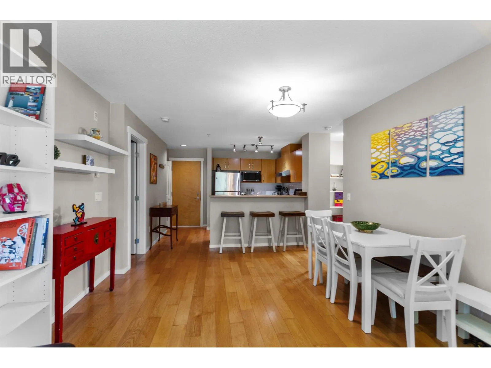 Welcome to The Tides by Polygon, the perfect blend of comfort, style, and location. This private, greenbelt-facing 2-bed/2-bath home is thoughtfully designed with bedrooms on opposite sides, a walk-in closet, and an upgraded ensuite, offering both functionality and elegance. Entertain with ease in the open-concept kitchen, featuring s/s appliances, gas stove, and plenty of counter space, all flowing into a cozy living room with a fireplace. Hardwood floors throughout, along with a new washer/dryer, and dishwasher, make this home truly move-in ready. Enjoy community-forward resort-style amenities at the Canoe Club, including: tennis courts, outdoor pool & hot tub, gym, etc. Just steps from Rocky Point Park, brewer's row, trails, both Inlet and Moody Centre Station. Don't miss it! (id:27476)