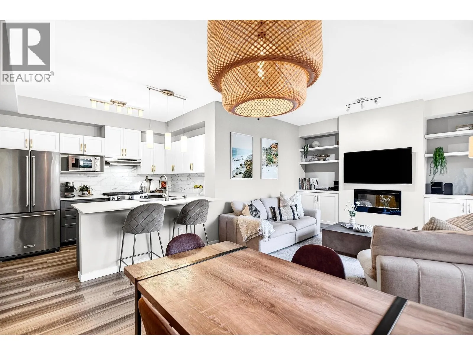 Experience the ultimate lifestyle in this TOP FLOOR 820 SQ FT sanctuary, larger than many area 2-bedroom suites. Fully renovated & turn-key, this home features a rare mini-split A/C & heat system for year-round comfort. The bright, open living space boasts a custom fireplace and leads to a private courtyard facing balcony. The king-sized primary bedroom includes a bonus office nook, perfect for WFH. The den offers flexibility; storage, WFH or spare bed. Forget the stress of renovating or the cost of a cramped 2-bed; this move-in-ready gem offers premium finishes and rare floor-space flexibility. Enjoy Canoe Club luxury (pool, gym, tennis). Why compromise on size when you can have Port Moody´s largest 1-bedroom floor plan at a standard-market entry point? Open House Sat Apr 18 2-4pm (id:27476)