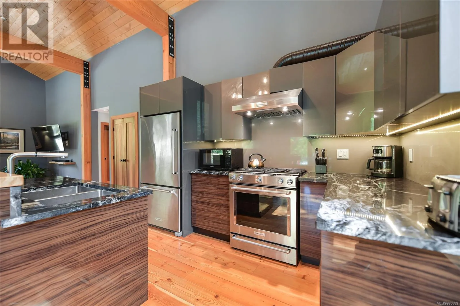 Introducing 2 homes on a flat and useable 6+ Acres zoned TC-1 (Tourism Commercial-One zoned) allows Tourist facilities, Retail establishments, Home based business or Bed and breakfast! In addition to the two dwellings the property itself has a 7 site trailer park plus detached boat storage and has several access points/entry's including one off of Parkinson Rd and two from Osprey Pl (which is a quiet no through cul-de-sac). The main home is a stunning 2019 custom built West Coast style home featuring vaulted ceilings with exposed beams, Hardwood floors, Stone countertops, High-end appliances, Heat pump, Two bedrooms, Two bathrooms plus a covered outdoor deck perfect for entertaining year round! The second building is a cottage with vaulted ceilings, large exposed beams, cozy wood burning stove, loft bed, 1 bathroom plus large covered deck. Outside features a detached covered shed/work area. Located in Port Renfrew! A Sea side community nestled along the rugged West Coast shoreline. (id:27476)