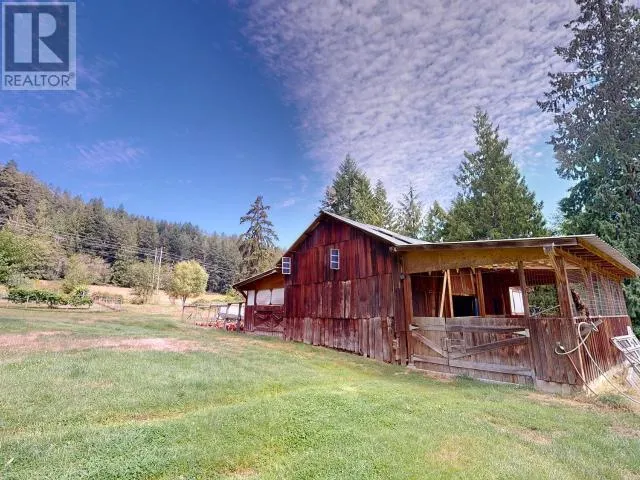 12.81 Acre HOBBY FARM with multiple shops, barns and year-round creek! Longtime owner is ready to let it go with all the farm equipment including newer tractor & more. Beautiful property is mostly in the ALR and is ready for animals - cows, horses, pigs & chickens! Nursery potential. Different zones including fenced pasture areas, alder forest & a nice bluff with view. Charming 2 bed main home features wood floors in living room and a brand new woodstove. Beautiful kitchen w/ updated appliances & lots of space. Many outbuildings including 1 bed, 1 bath guest house, barn with space for cows and chickens, pig house & run, new greenhouse and THREE SHOPS: one at the rear of the property; a big open carpentry / woodworking shop; and mechanics / tool shop by the house. There is also a pad out front of the house with septic & water hookups. Two water licences in place! Well established property features huge garden area by the home, many fruit & nut trees, berry bushes, grapes and more! (id:27476)