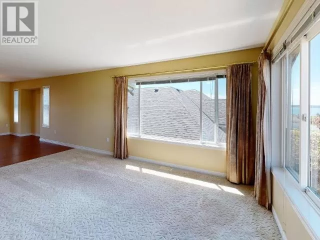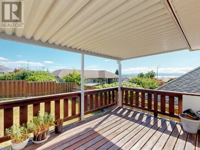 OCEAN VIEW RANCHER - Experience comfortable one-level living in this charming 3 bedroom, 2 bath rancher offering lovely ocean and mountain views. Nicely landscaped, with a covered front entrance and set in a desirable, central neighbourhood. Step inside to a bright, open layout with a spacious living room and dining area that opens to a private covered deck. There's ample storage & counter space in the kitchen, plus a convenient eating bar. The primary bedroom includes a walk-in closet and ensuite bath. Two more bedrooms and full bath complete the comfortable living spaces. The laundry room serves as a handy entrance to the attached double garage. Enjoy gardening and a safe place for kids and pets in the fenced back yard with glimpses of the ocean. Call for your appointment to view today. (id:27476)