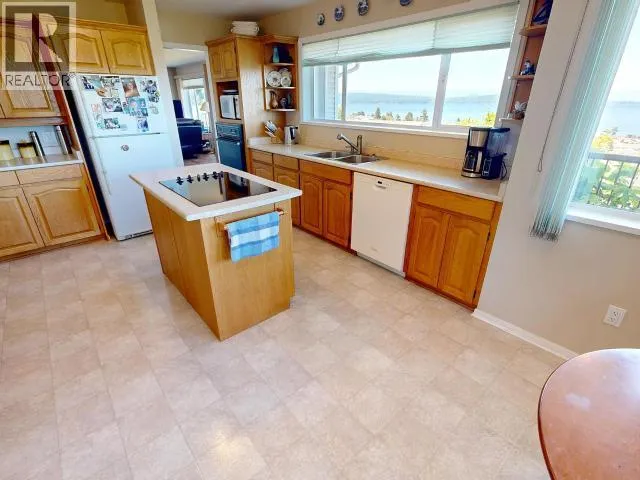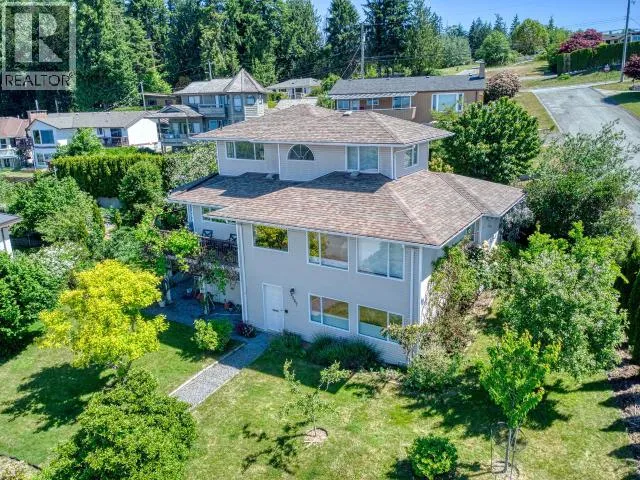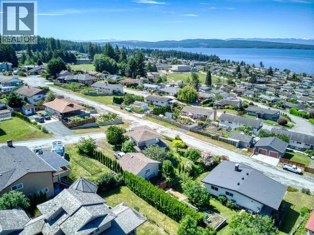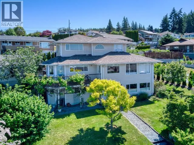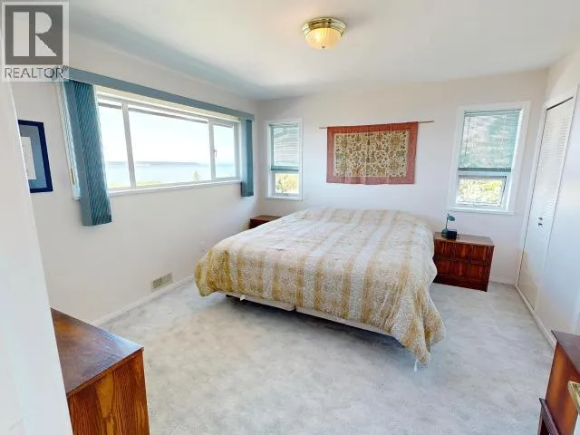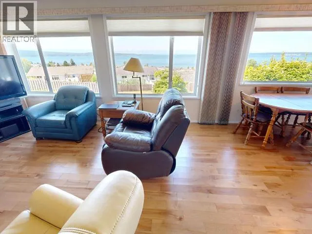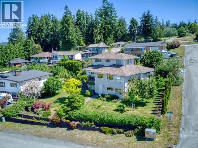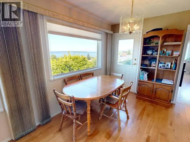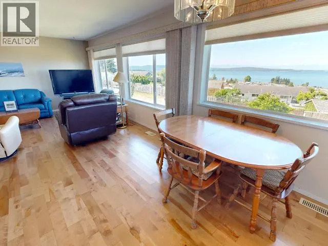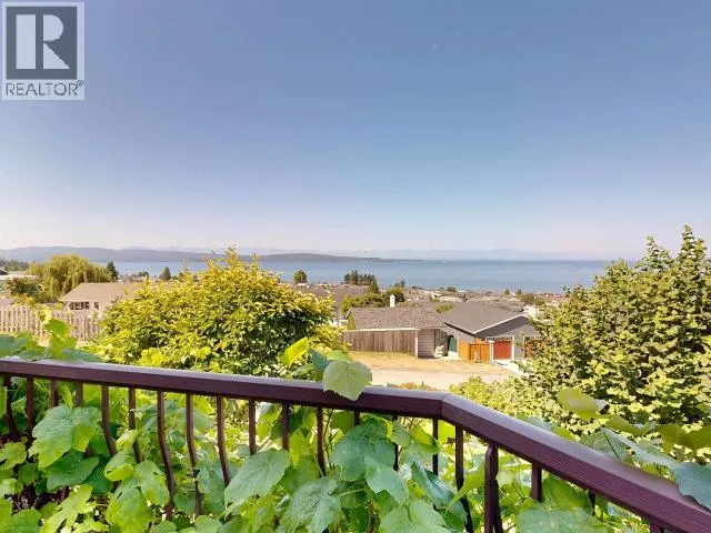 PHENOMENAL OCEAN VIEW from all three floors of this home, located in one of Powell Rivers most desirable neighbourhoods! Amazing views of Texada, Harwood and Savary islands. The main floor takes full advantage of the vista with a big bank of windows from the spacious living areas. Tiled kitchen has a breakfast nook, island and lots of beautiful cupboards plus it exits to a view balcony & yard. Living & dining room with lovely birch floors are big enough for your largest family gathering! Also on the main is 4-piece bath & 2 bedrooms. Roomy foyer exits through lovely doors to the detached double garage. Upstairs is the primary suite with a soaker tub & huge walk-in closet. Den up could be fifth bedroom. Suite potential in the walk-out lower floor, with an ocean view, living room, galley wet-bar area, 2 bedrooms, bath, laundry and office. This home has great exposure & sunsets. 200 amp service, 27 new window seals, landscaped yard with persimmon, grape vines and apple tree. (id:27476)