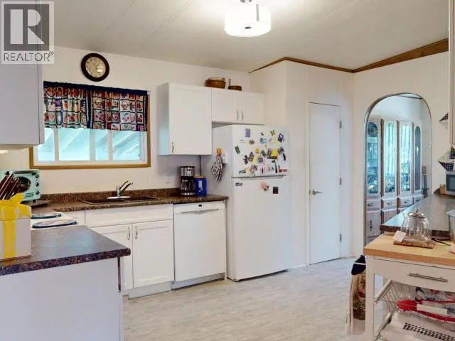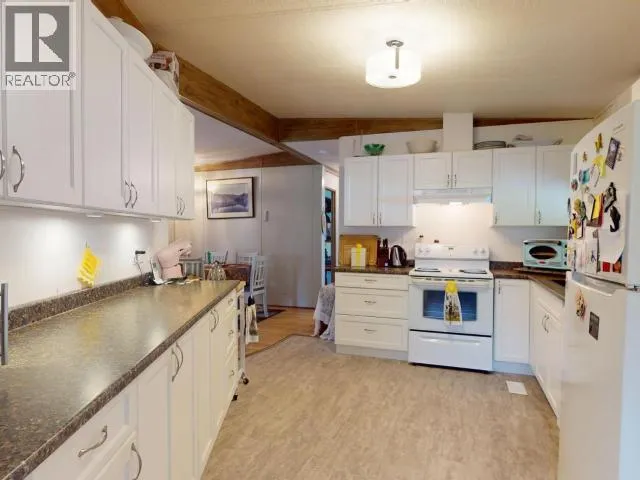 CENTRAL DOUBLE-WIDE MOBILE HOME ON A LARGE PAD. Tucked away in a hidden corner of this central Westview mobile home park is a large, nicely kept home with covered carport, large pad and lots of room. The good-sized principal bedroom features a large four piece ensuite and there's a second bedroom and bath for guests, in-laws or children. The kitchen is a large open design which flows into both a kitchen dining area and cozy living room. The second, larger dining room is adjacent to a well-designed, heated addition that's a perfect space for crafts, a gym or even a third bedroom. You'll find this layout provides lot of room for spreading out and for storage. A solid roof, newer furnace, vinyl windows and appliances ensure that you'll be warm, dry and comfortable through the year. The large private pad is perfect for gardening and outdoor activities. Blue Mountain Park is a well-managed park on the bus route and only five minutes drive from the city centre. (id:27476)