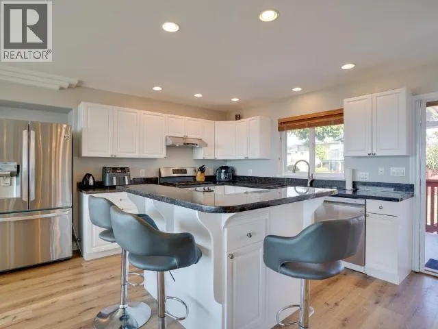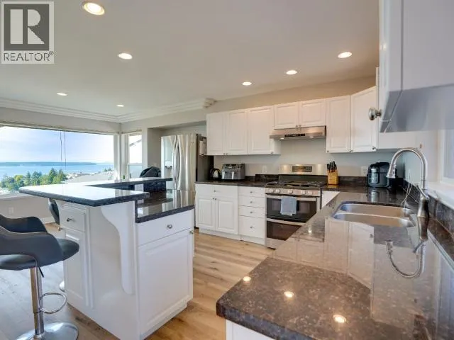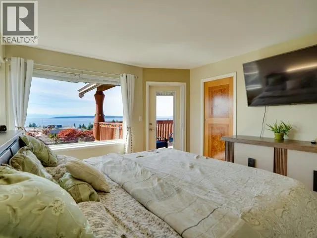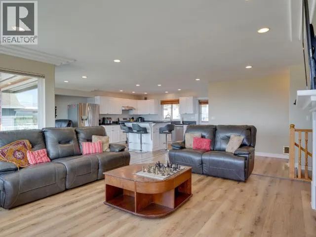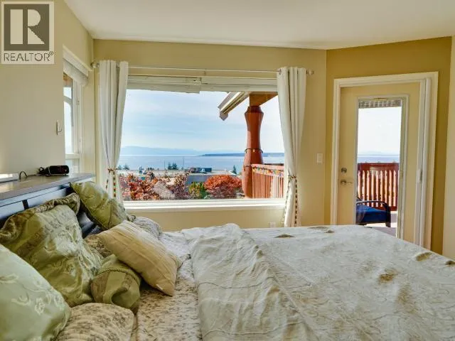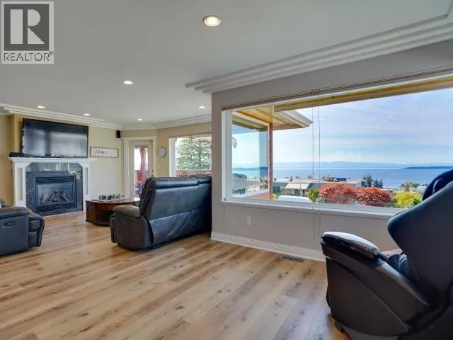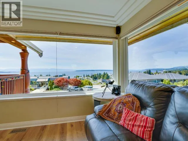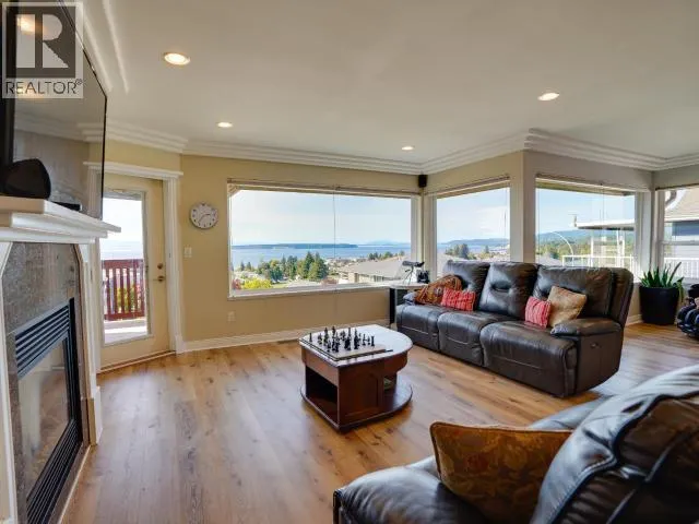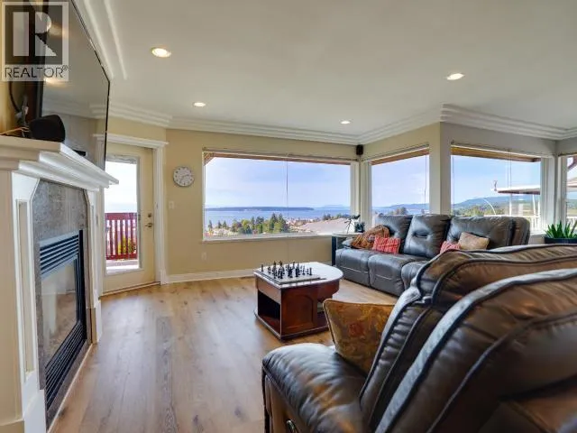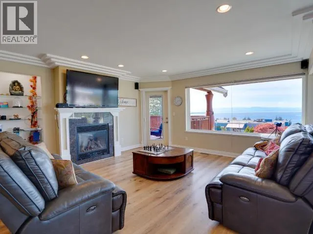 Sweeping Salish Sea views! This executive style home boasts 3 spacious bedrooms, 3-baths, office/den and a large, bright walk out in-law suite or additional accommodation. Designed for comfort and efficiency, this home features modern finishes, open living areas, and seamless indoor-outdoor flow. A large back patio and two covered decks are perfect for entertaining & enjoying the spectacular sunsets. This home was extensively updated (23/24) so you won't have to. A new roof, high-efficiency heat pump, a 7.5 kW solar system (that feeds back into the grid!), a full kitchen renovation and Duradek coated decks. There is also new vinyl plank flooring and new appliances. This amazing family home blends style, low utility costs, and versatility. Offering oceanfront-inspired living, with creature comforts and income potential! In one of Powell River's most desirable neighborhoods, this home has it all with a million dollar view! Book your personal showing today. (id:27476)