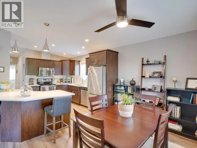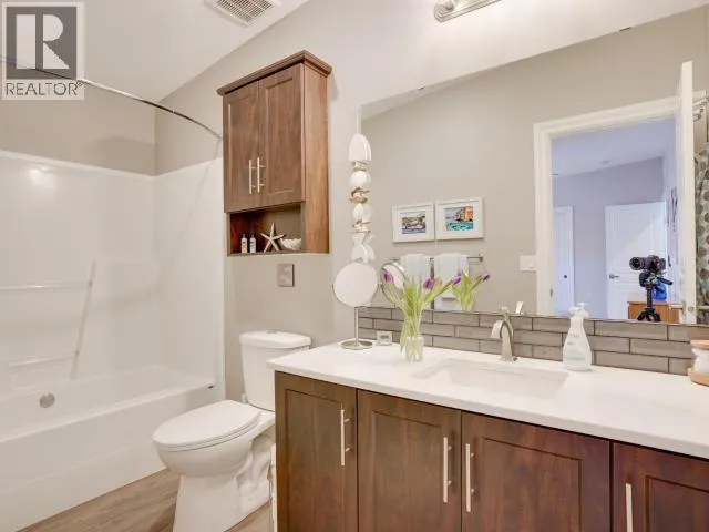 Discover exceptional quality in this immaculate 2016 home located in a quiet park just south of town. With 1,064 sq ft of thoughtfully designed living space, this 2-bed, 2-bath home offers vaulted ceilings, luxury vinyl plank flooring, and elegant quartz countertops throughout. The modern kitchen features stainless steel appliances and a bright, open layout. Both bathrooms are beautifully finished, with the main bath showcasing a stunning tiled rock shower and upscale fixtures. Step onto the sunny deck overlooking your private yard, perfect for relaxing or entertaining. A powered shed provides great space for a studio or workshop, and a covered carport adds convenience. Enjoy peaceful park living with walking paths, a pond, and seating areas--all just minutes from town. (id:27476)