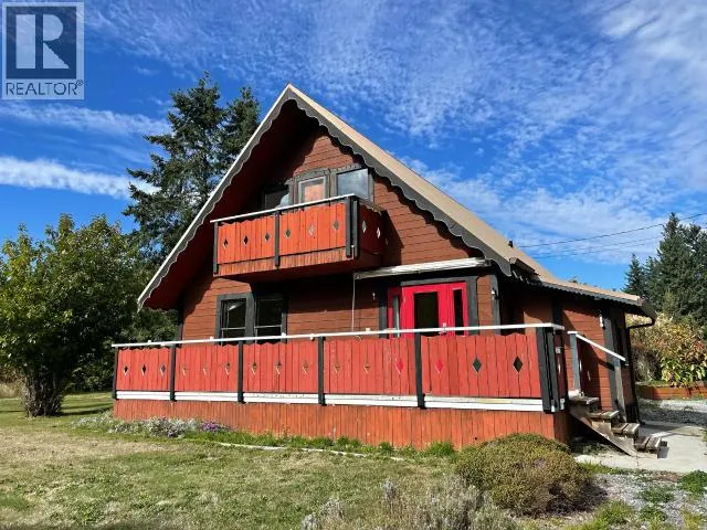 HOBBY FARM NEAR DONKERSLEY BEACH -- 3 bed, 1.5 bath country farmhouse plus 2 bay open garage with concrete floor & small shop on five acres in the Agricultural Land Reserve just south of town. Cute "Swiss style" A-frame house has an open living area with galley kitchen, primary bedroom and full bath on the main floor, plus 2 bedrooms, one with a balcony, and a half bath upstairs. Well maintained home has front & back decks, heat pump, metal roof and 200 amp service. There are lots of different zones on the property with a large Monkey Puzzle tree, grape vines, hedges and garden boxes near the house & garage. The partially fenced acreage is mostly pasture, nicely treed at the back and has housed horses and sheep. Located just past Black Point, in an area of other farms and walking distance to the beach. (id:27476)