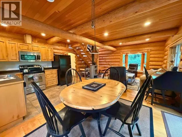 Custom 1,428 sq. ft. Fir Log Home in Bliss Landing - Located just north of Lund, this beautifully crafted home by Hogan Log Homes (2005) is surrounded by cedar and fir forest with peek-a-boo ocean views. It features quality construction and thoughtful custom details throughout. The main floor offers an open-concept kitchen, dining, and living area with maple hardwood floors, radiant tile heat, stainless-steel appliances, a Scandesign wood stove, and sliding doors to a large sundeck. Upstairs includes a spacious family room, two-piece bath, and second bedroom with access to a covered deck. Custom accents include large wooden oars as handrails and log-framed railings with inlaid metal forest art. Bliss Landing is a private coastal community with a deep-water marina, boat launch, caretaker, pickleball and tennis courts--an exceptional opportunity at the gateway to Desolation Sound. (id:27476)