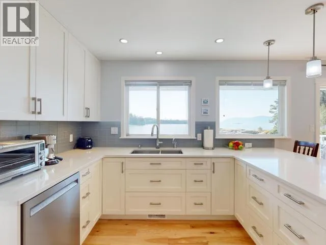 WALK-ON WATERFRONT! This waterfront property offers a combination of exceptional home and awe inspiring seaside living. Nestled in Frolander Bay near the Stillwater Bluffs this home enjoys southern exposure and unobstructed views in a protected bay. The gently sloping lot is over 0.5 an acre with 80' of pristine beachfront. This home has been renovated with stunning hardwood floors, new windows and a bright, open plan ideal for your waterfront retreat. The custom kitchen features ceiling-height cabinets, quartz counters and glass tile backsplash with eat-up peninsula and stainless appliances, opening to the wrap-a-round deck, ideal for hosting. The entire living space is open concept and enjoys natural light and ocean views. Main-level-master features stunning ensuite with rain water shower and dual vanity. The home offers 5 bedrooms and 3 bathrooms. The ground floor has 3 spare bedrooms for guests and family. This stunning home is a must see! (id:27476)