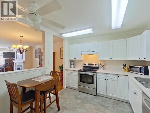 Beautiful ground-level 1,086 sq ft condo with a spacious layout and private patio--perfect for BBQs and outdoor living. The open-concept kitchen flows into the dining and living areas, featuring a cozy natural gas fireplace and serene garden views. The primary bedroom offers a 3-piece ensuite and glass doors leading to the patio, while the second bedroom is ideal for guests or a home office. Enjoy in-unit laundry, secure underground parking with storage locker, and affordable strata fees of $382.19/month including heat and hot water. A fantastic opportunity for comfortable, convenient living. (id:27476)