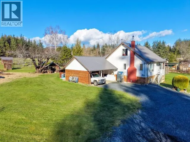 Storied 11-acre homestead just minutes from Donkersley Beach. Originally built in 1941 and relocated to Powell River, this solid character home blends history with functionality. The land is beautifully balanced--open pasture and peaceful forest--offering privacy, usable acreage, and agricultural potential. The 4-bed, 1.5-bath farmhouse features beautiful hardwood floors, abundant natural light and many updates in the last 8 years including plumbing, electrical, metal roof, basement windows, cedar cladding, perimeter drains and a brand new oil tank. A cozy wood stove adds warmth & ambiance while the half-finished basement offers future development options.The newly built private back deck features a soaking tub with a view of the stars! Outside you'll find a well established garden with 700+ asparagus plants, berries, fruit and nut trees, fenced growing areas, pond, and an active farm stand. A Rare opportunity for those seeking space, self-sufficiency, and coastal proximity. (id:27476)