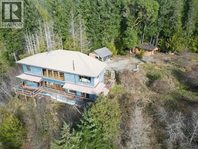 Million-Dollar Views on Five Private Acres! Custom-built home offering breathtaking ocean and mountain views of Savary, Hernando, Cortes, and Vancouver Islands. This West Coast-style home features vaulted ceilings, a spacious cook's kitchen with ample cabinetry, a welcoming living room with natural stone masonry fireplace, and a large dining area ideal for entertaining. A library/den with built-in bookshelves adds warmth and character, with one bedroom and easy potential for three bedrooms, including an artist's studio or flexible living space. This home needs some TLC to bring it back to its full potential and shine. Set on a private mountainside surrounded by lush forest, the property offers abundant garden space, patios and decks for outdoor living, several outbuildings including a detached workshop, and a new unfinished structure ready for a shop or studio. Two water wells service the property. A rare West Coast retreat, book your showing today! (id:27476)