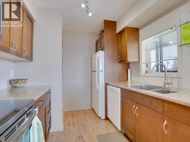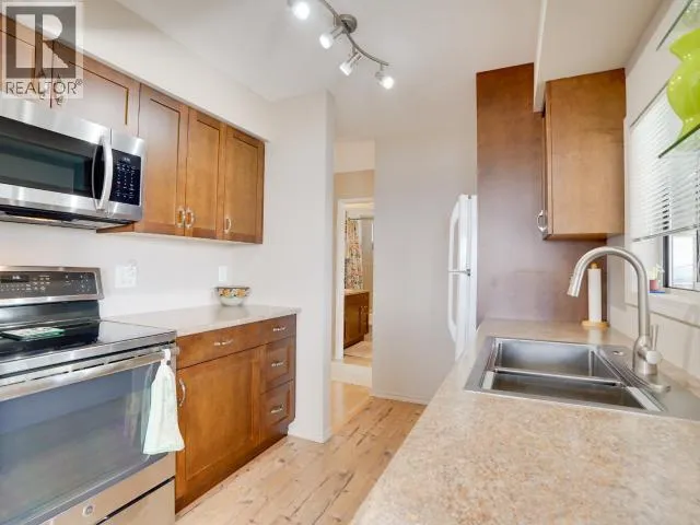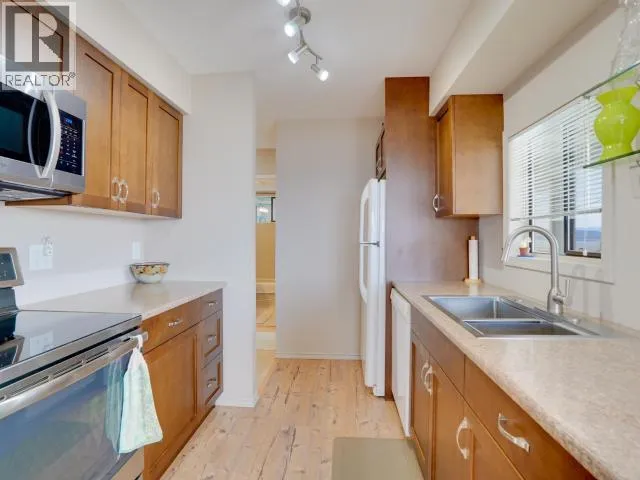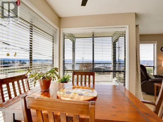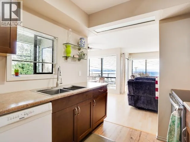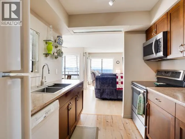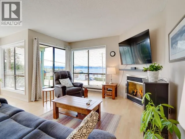 Ocean view living in the heart of Westview! This beautifully maintained condo offers sweeping ocean views and an easy, move-in ready lifestyle just minutes from Powell River's shops, restaurants, and waterfront. Bright and welcoming, the living space opens to a private balcony where you can relax and take in stunning coastal sunsets. The updated galley-style walk-through kitchen features modern touches, built-ins, and excellent storage, creating a functional and stylish space for everyday living. Immaculately kept and truly move-in ready, this home is clean, comfortable, and thoughtfully updated throughout. Stay comfortable year-round with the bonus of a heat pump providing efficient heating and cooling--perfect for those warm summer days. With two bedrooms, a smart layout, and a well-maintained building in a desirable central location, this condo is ideal as a full-time home, investment, or low-maintenance coastal retreat. (id:27476)