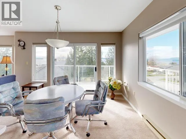 Welcome to GRANDVIEW ESTATES, This spacious 2 bed 2 bath condo 1150 sqft. corner unit is open, bright & offers incredible ocean views. Large wrap-around deck. This 2nd floor unit w/ gated access and elevator in a well-maintained building. Central location, close to the shopping & services of downtown, and the culture of Marine Ave. The corner unit provides more windows & natural light, with Hunter-Douglas Blinds, open concept w/ large kitchen, living room and dining room all enjoy great ocean views. Primary bedroom w/ bay window, walk in closet and full ensuite bathroom. Other features include walk-in shower with bench seat in main bathroom, own laundry room, and plenty of storage. Allocated parking and storage locker included. Downsize in style with this beautiful condo in a great building! (id:27476)