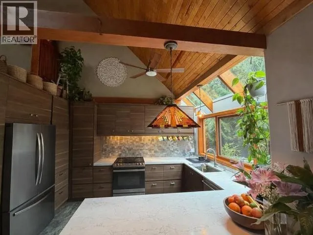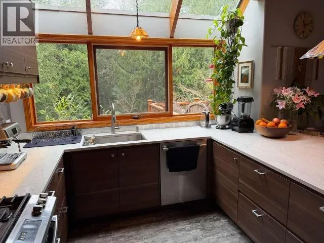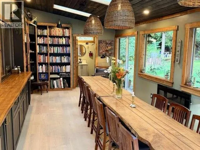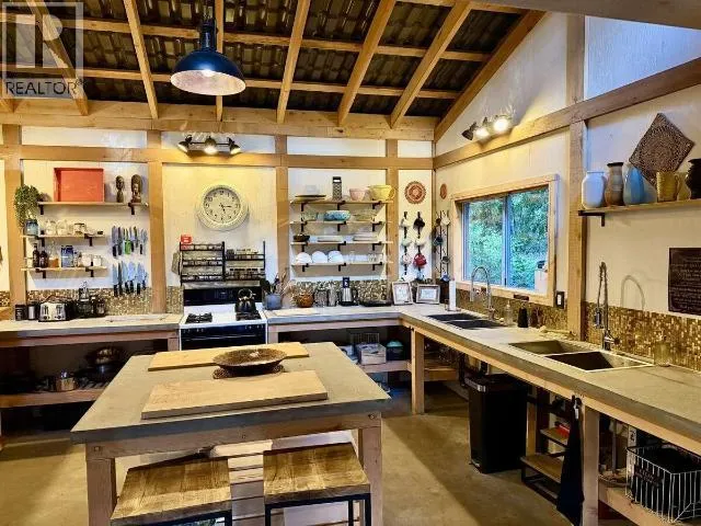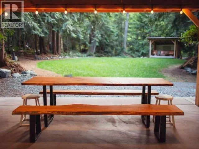 For more information, please click Brochure button. Set on private 4.3 acres just minutes to the ocean, Lund, and 25 minutes to Powell River, this exceptional forested property features a beautiful 4,000+ sq ft 4-bedroom home plus a self-contained suite. Also included are a stunning 1,250 sq ft studio/workshop, four guest cabins, and a separate entrance office. The main home offers a warm layout with a spacious kitchen, granite countertops, skylights, wood beams, and bright living areas that open to outdoor decks. Expanded dining with skylights, a built-in library, heated floors and floor-to-ceiling glass connects to the landscape. The lower level includes a pantry, fourth bedroom, and billiard lounge. Landscaped grounds feature fruit trees, gardens, a seasonal stream and waterfall, plus a wood-fired hot tub, pool, and forest guest kitchen. A truly special coastal forest setting offering privacy, flexibility, income potential, and a rare lifestyle opportunity. (id:27476)