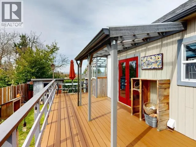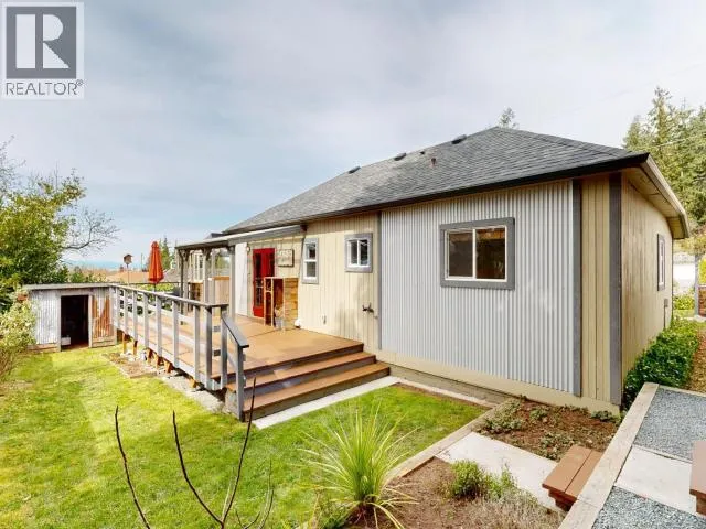 Welcome to this stunningly renovated 1950s gem at 6152 Lois St! This move-in-ready home seamlessly blends vintage charm with modern high-end finishes. The interior features a functional open-concept layout made even more impressive by 9-foot ceilings throughout, creating an airy, spacious feel. Highlights include t&g pine ceilings and a designer kitchen boasting live-edge acacia counters. Significant 2021 upgrades include all new doors--including elegant French doors--dual pane vinyl windows, 80% electrical rewire, new plumbing, and zoned baseboard heat. The exterior shines with a 30-year roof, cedar fencing, and a 400 sq' cedar deck. Hobbyists will love the 334 sq' detached workshop/studio (2022) with a 60-amp subpanel and vaulted cedar ceilings. With new drywall, a full travertine tile bathroom rebuild, and refreshed landscaping, every detail is done. Just move in and enjoy! Call today for your private viewing. (id:27476)