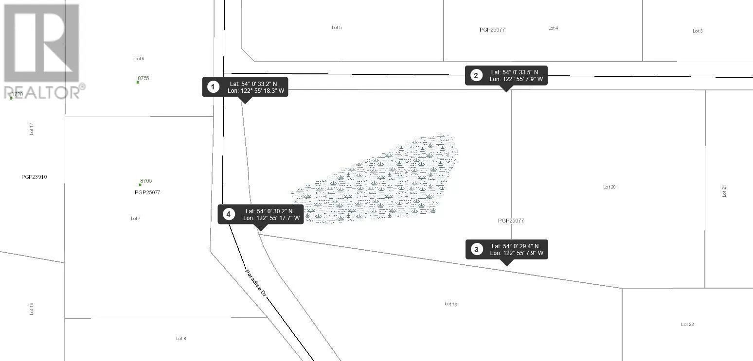 * PREC - Personal Real Estate Corporation. Subdivision of Paradise Estates; over 5 acres of treed rural building lot. Well drilled and hydro available. Other lots also available in this subdivision. 10 minutes from the Hart Mall, approx. 20 minutes from downtown Prince George. Lot size is approximate, buyer to verify if important. The seller makes no representations or warranties with respect to the condition and functionality of the shared wells. (id:27476)