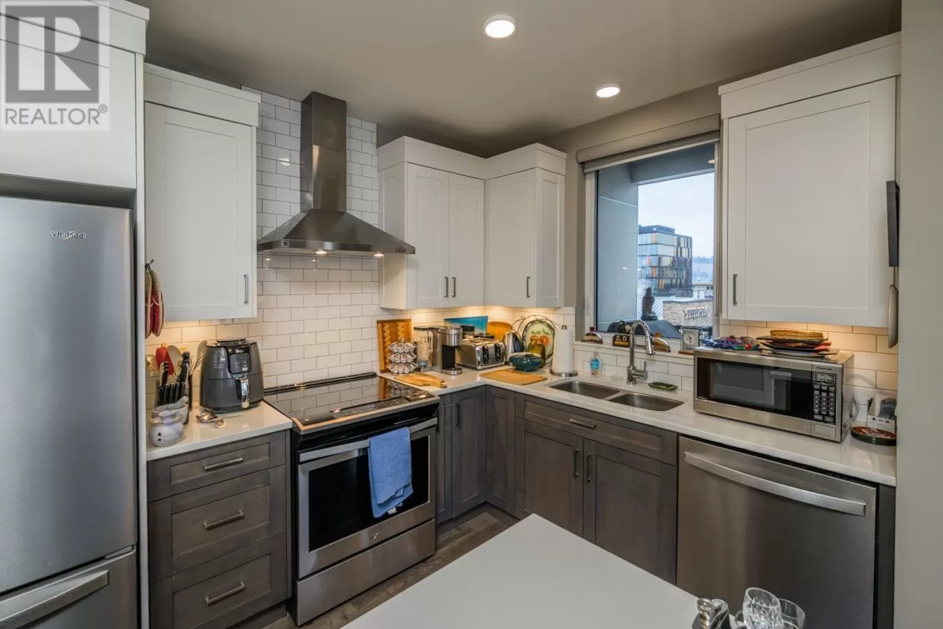 Welcome to low maintenance, easy living in the heart of downtown Prince George. This stunning corner unit features 2 spacious bedrooms and 2 modern bathrooms with high-end finishings throughout. Enjoy the warmth of in-floor heating and the convenience of air conditioning, ensuring year-round comfort. Step out onto your covered balcony, complete with a gas hook-up, perfect for entertaining or simply relaxing while looking over downtown. With a prime location, this condo is walking distance to shops, restaurants, breweries, and all the amenities PG has to offer. The building features secure FOB access, providing peace of mind, including two underground parking spots for your convenience. There is also a Municipal property tax exemption with several years remaining. Book a showing today! (id:27476)