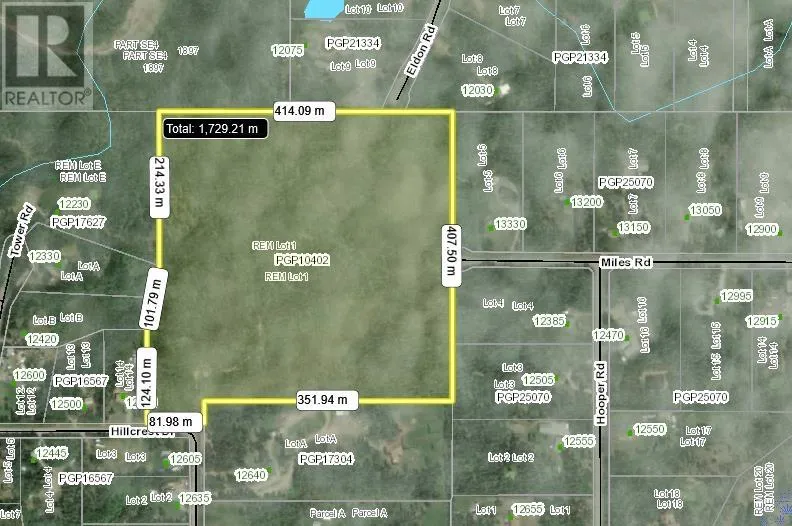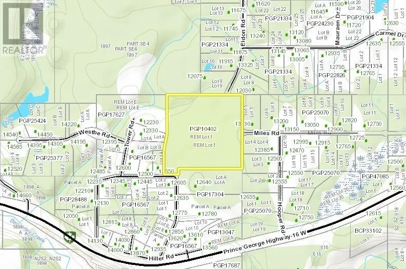 Incredibly rare 43.82-acre parcel in highly desirable Beaverly, offering exceptional privacy and endless possibilities. Whether you dream of building your private retreat or developing and subdividing into smaller lots, this property is ready for your ideas. With three access points off Hillcrest, Miles, and Eldon Road, the subdivision potential is huge. Hydro and natural gas are available nearby, making future development even more attractive. Don't miss this chance to own a large, versatile piece of land in one of Prince George's most sought-after areas! Also on Residential - see MLS# R2976447 * PREC - Personal Real Estate Corporation (id:27476)
