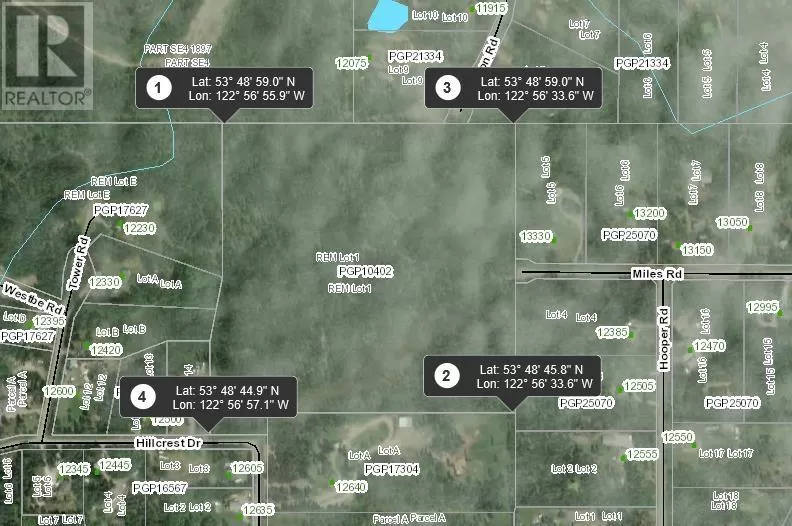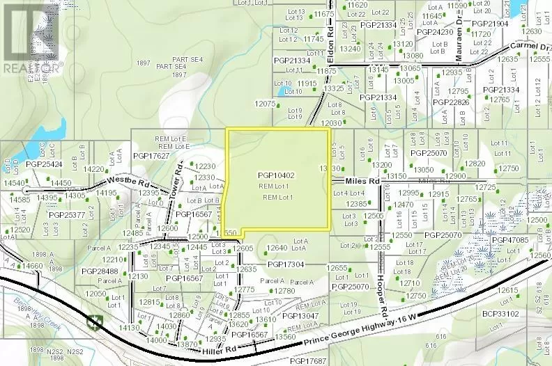 * PREC - Personal Real Estate Corporation. Incredibly rare 43.82-acre parcel in highly desirable Beaverly, offering exceptional privacy and endless possibilities. Whether you dream of building your private retreat or developing and subdividing into smaller lots, this property is ready for your ideas. With three access points off Hillcrest, Miles, and Eldon Road, the subdivision potential is huge. Hydro and natural gas are available nearby, making future development even more attractive. Don't miss this chance to own a large, versatile piece of land in one of Prince George's most sought-after areas! Also on Commercial - see MLS# C8067390 (id:27476)