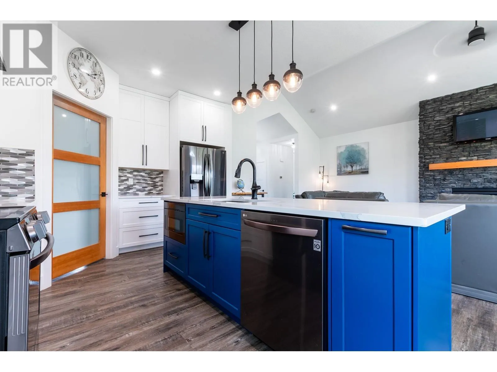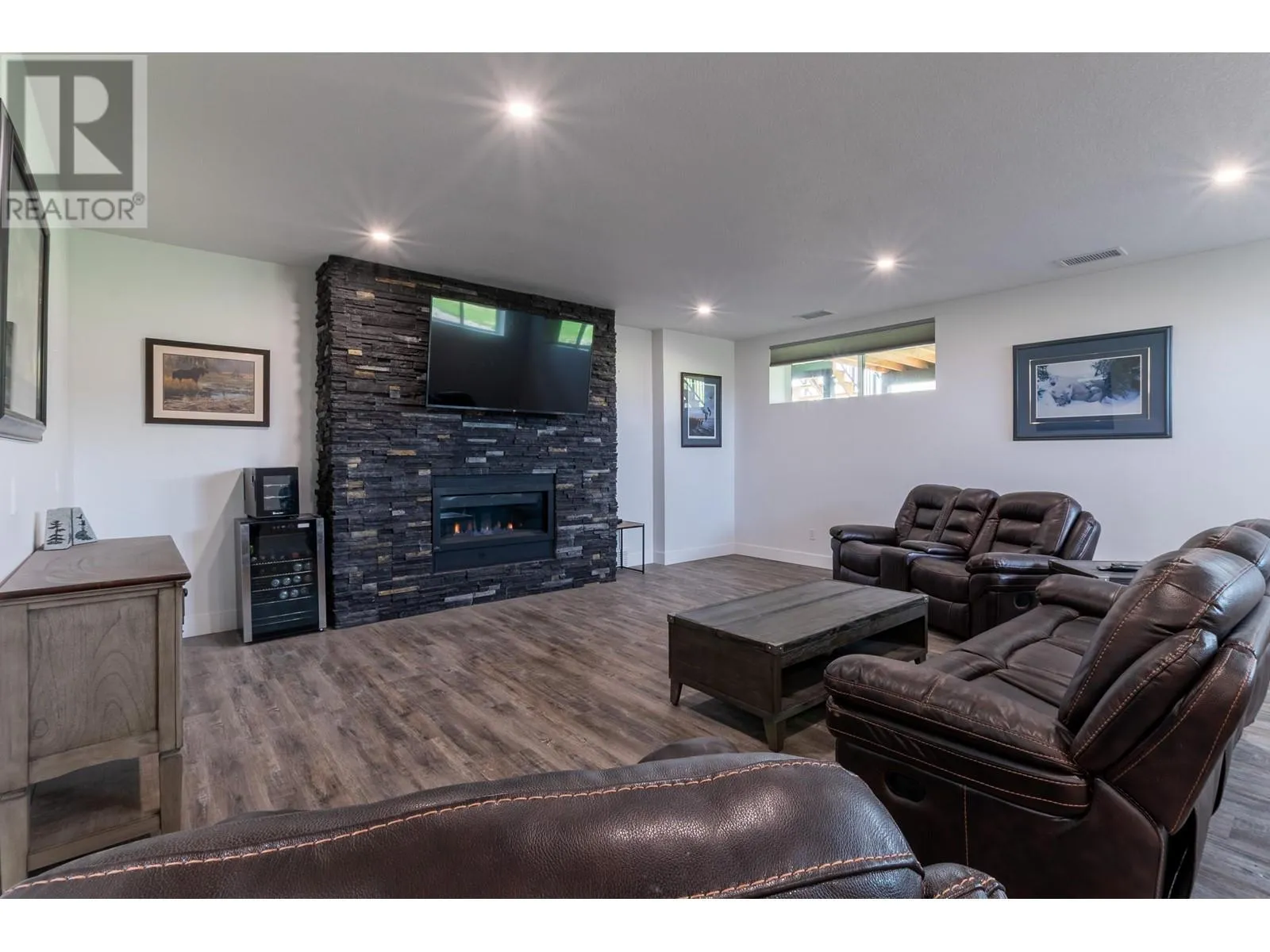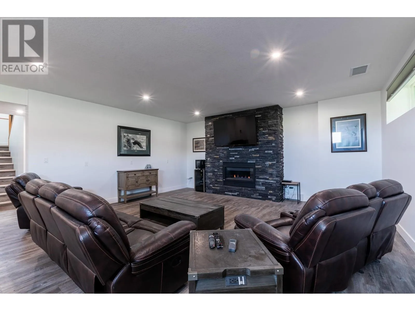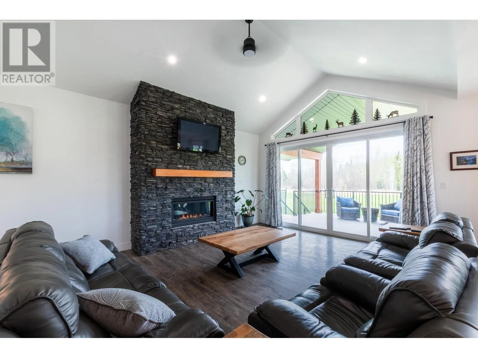 Welcome to this beautifully constructed 2022 home perfectly situated on 5 fully fenced, flat acres. Thoughtfully designed for comfort & lifestyle. This property truly has it all. Enjoy vaulted ceilings & oversized windows that fill the home w natural sunlight. Main floor features 2 beds and 2 full baths, a spacious pantry for easy grocery storage, main floor laundry, & oversized sliding glass doors that open onto a covered deck-perfect for soaking in the rolling clouds. Primary offers its own deck access, WIC, custom blinds & stylish ensuite. Lower level includes two additional large bedrooms, a full bath & a welcoming rec room w striking floor-to-ceiling stone fireplace and mantel. Easily suitable, Practicality meets convenience with a 30x32 double garage complete with overhead radiant heat. School bus pick-up & drop-off nearby, and close proximity to the Pineview store & airport-ideal for those with a travel bug. Whether you're looking for space, style, or flexibility, this home checks all the boxes (id:27476)