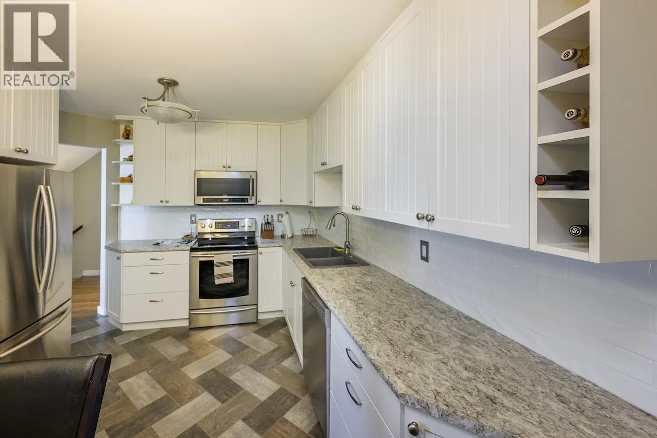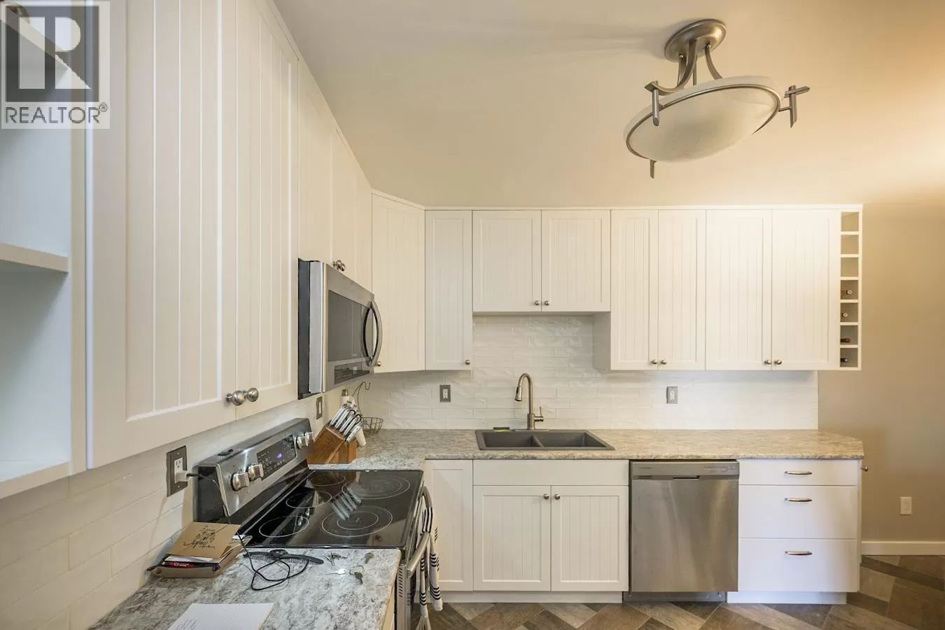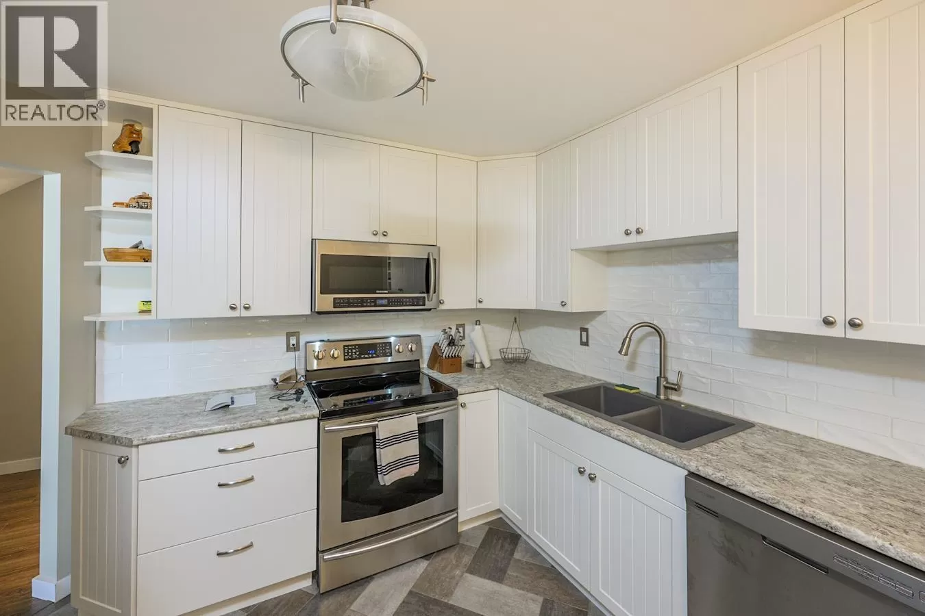 Exception value in the centrally located townhouse at 3363 Westwood Drive. Seller has done all the work with new kitchen, new paint throughout and freshly installed flooring in this 2 bedroom, 1 den and 2-bathroom gem! Private and secure garage for parking and additional parking in front for a 2nd vehicle or any guests. Primary bedroom is massive with its own walk in closet and new lighting. These are sought after units for people looking to downsize or great for students studying at CNC or UNBC. (id:27476)
