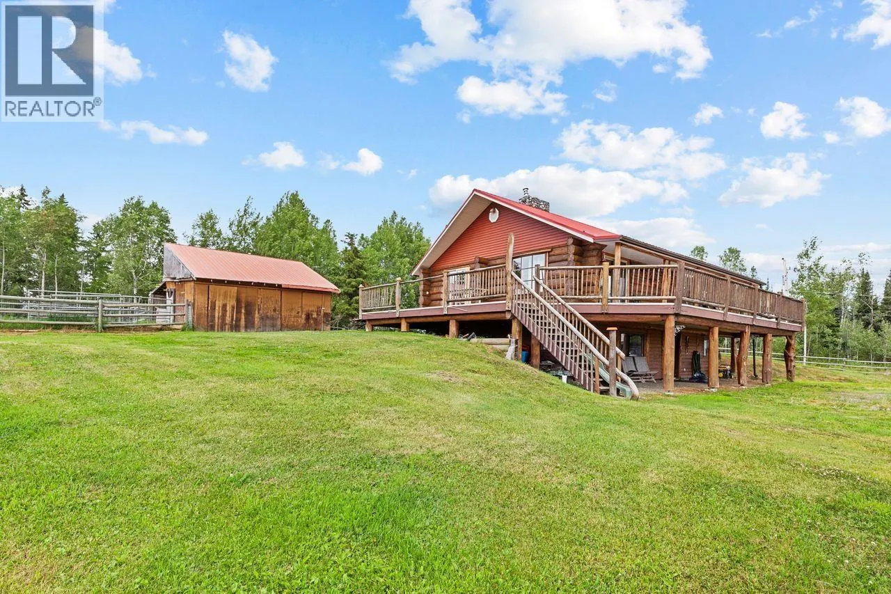 Escape to the tranquility of Salmon Valley with this charming 2-level log home on 12.47 acres. Enjoy peaceful country living just 30 minutes from downtown Prince George and close to the amenities in the Hart. The home features a spacious wrap-around deckâperfect for relaxing and taking in the natural surroundings. Horse lovers will appreciate the fenced and cross-fenced pastures, offering plenty of space for animals to roam. Several outbuildings provide ample storage for tools, equipment, or tack. Whether you're seeking a hobby farm or a private rural retreat, this property offers the perfect blend of rustic charm and practical amenities. All measurements are approximate; buyer to verify if deemed important. (id:27476)