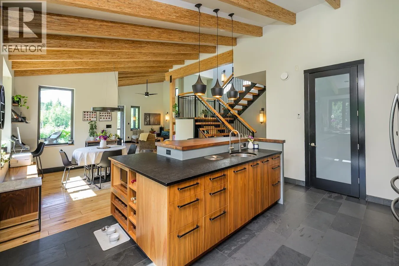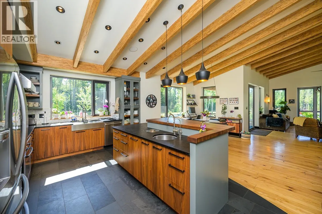 Embrace a rare opportunity to live sustainably on 80 acres of open space. This modern home is crafted for efficiency with structural insulated panels, triple-pane windows, and solar thermal water heating, reducing costs and environmental impact. Inside, a thoughtful layout offers five bedrooms, three-and-a-half baths, and a spacious triple garage. The kitchen serves as the centerpiece with custom walnut cabinetry, stone surfaces, and a generous island that invites gathering. Blending clean design with eco-conscious living, this property offers both everyday comfort and a forward-thinking lifestyle. (id:27476)