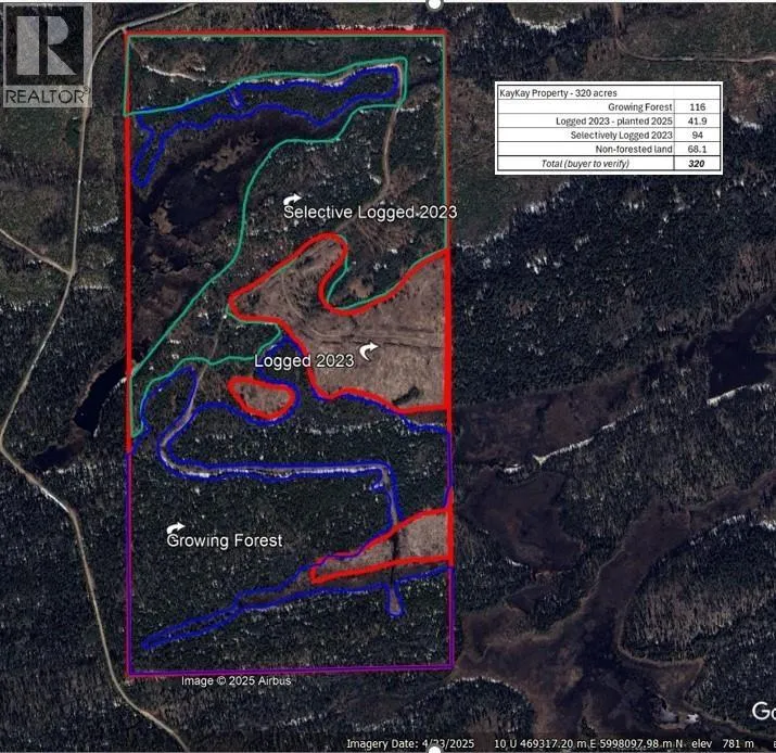 Great opportunity to own 323 acres near Kaykay Lake and ~20km past Saxton Lake. Mixture of treed timber and replanted. Hold as an investment or build your own off-grid getaway. Good road access via the Kaykay FSR. (id:27476)